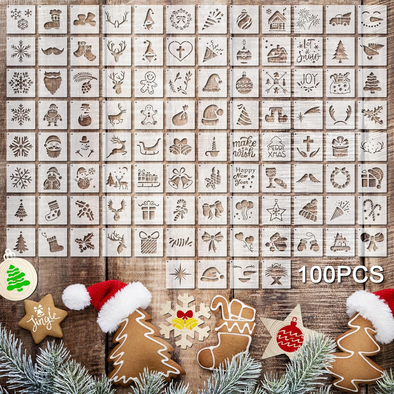 100 Pcs Stencils for Painting on Wood Reusable Stencil Crafts Drawing Templates Holiday Wall Paper for DIY Scrapbook Home 2 x 2 Inch(Santa Style)