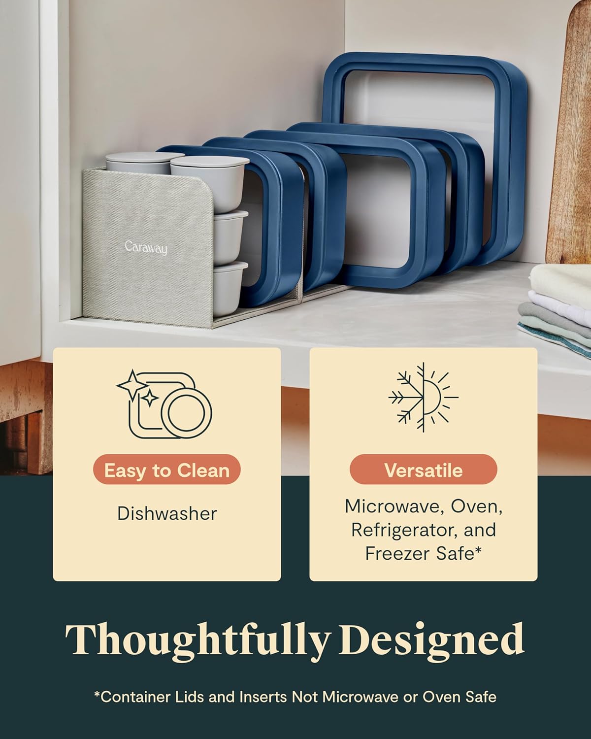 - BEAUTIFULLY DESIGNED: The cleanest, best-looking approach to storing your food. Our glass container set features clear glass lids for easy viewing that puts your leftovers in the spotlight. Each set comes in classic colors that will match with your entire Caraway collection.