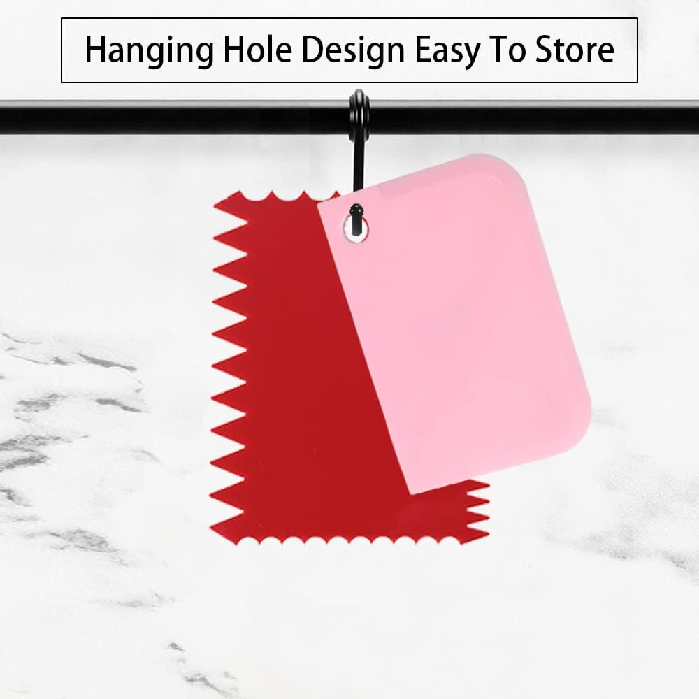 - 【Unique Design】:Have different shape,Different serrated tooth and round shaped edges,ranging from small,medium,and large.Allow you to create edges with different patterns and style on the side or top of the cakes.Hanging hole design,Convenient storage