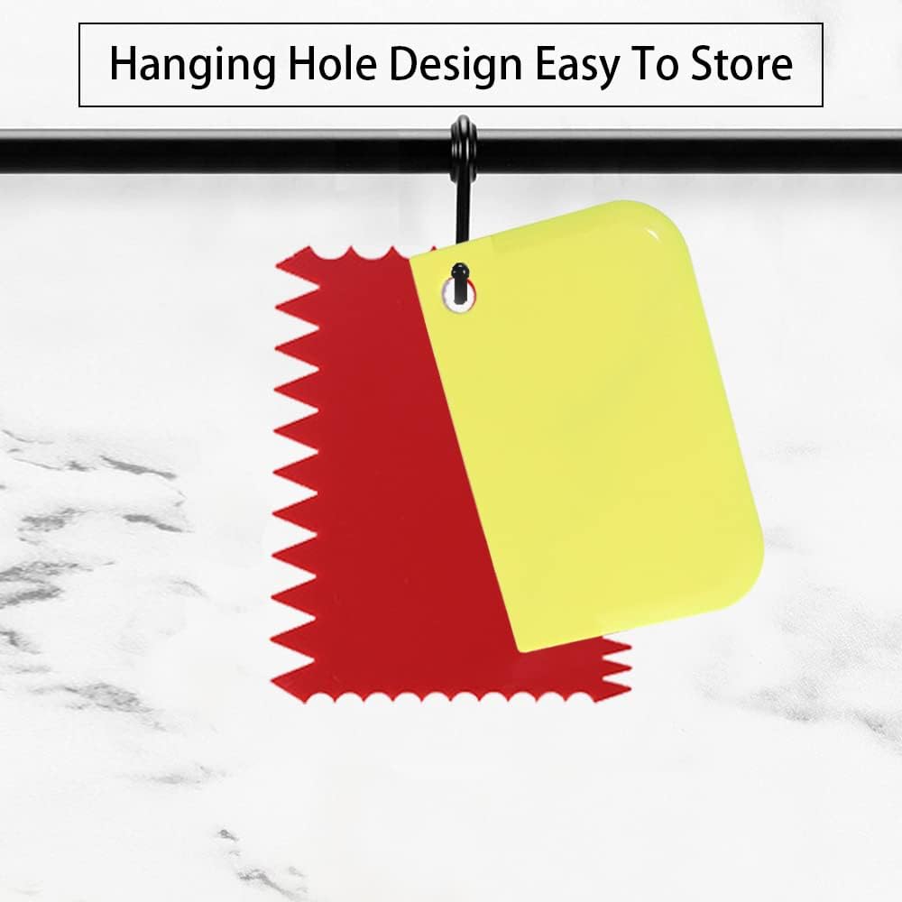 - 【Unique Design】:Have different shape,Different serrated tooth and round shaped edges,ranging from small,medium,and large.Allow you to create edges with different patterns and style on the side or top of the cakes.Hanging hole design,Convenient storage
