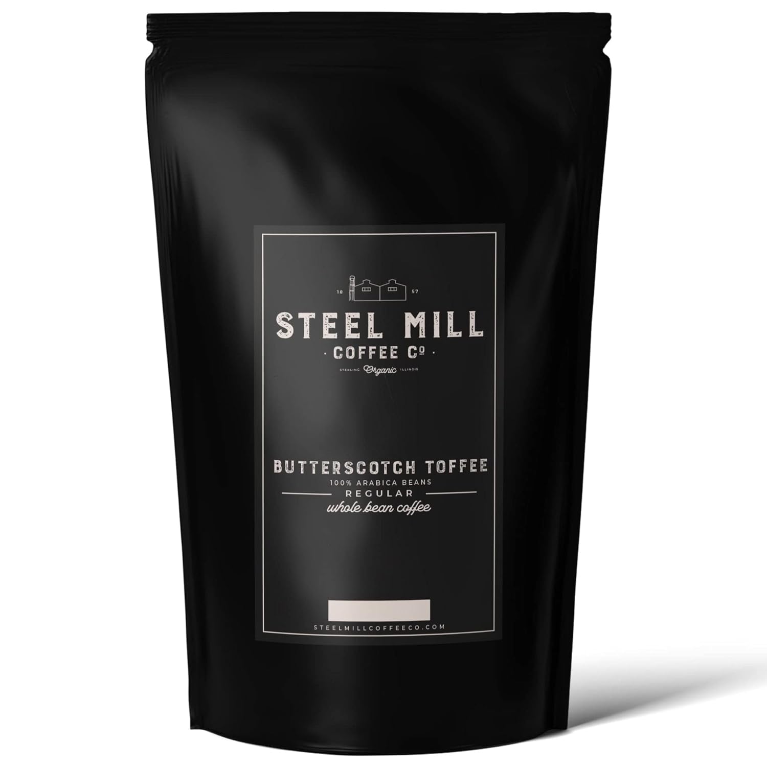 Steel Mill Coffee Co. Butterscotch Toffee Flavored Coffee - Ground Coffee, Regular, Medium Roast, Regular, Vegan, Gluten-Free, Sugar-Free, 12 oz Bag