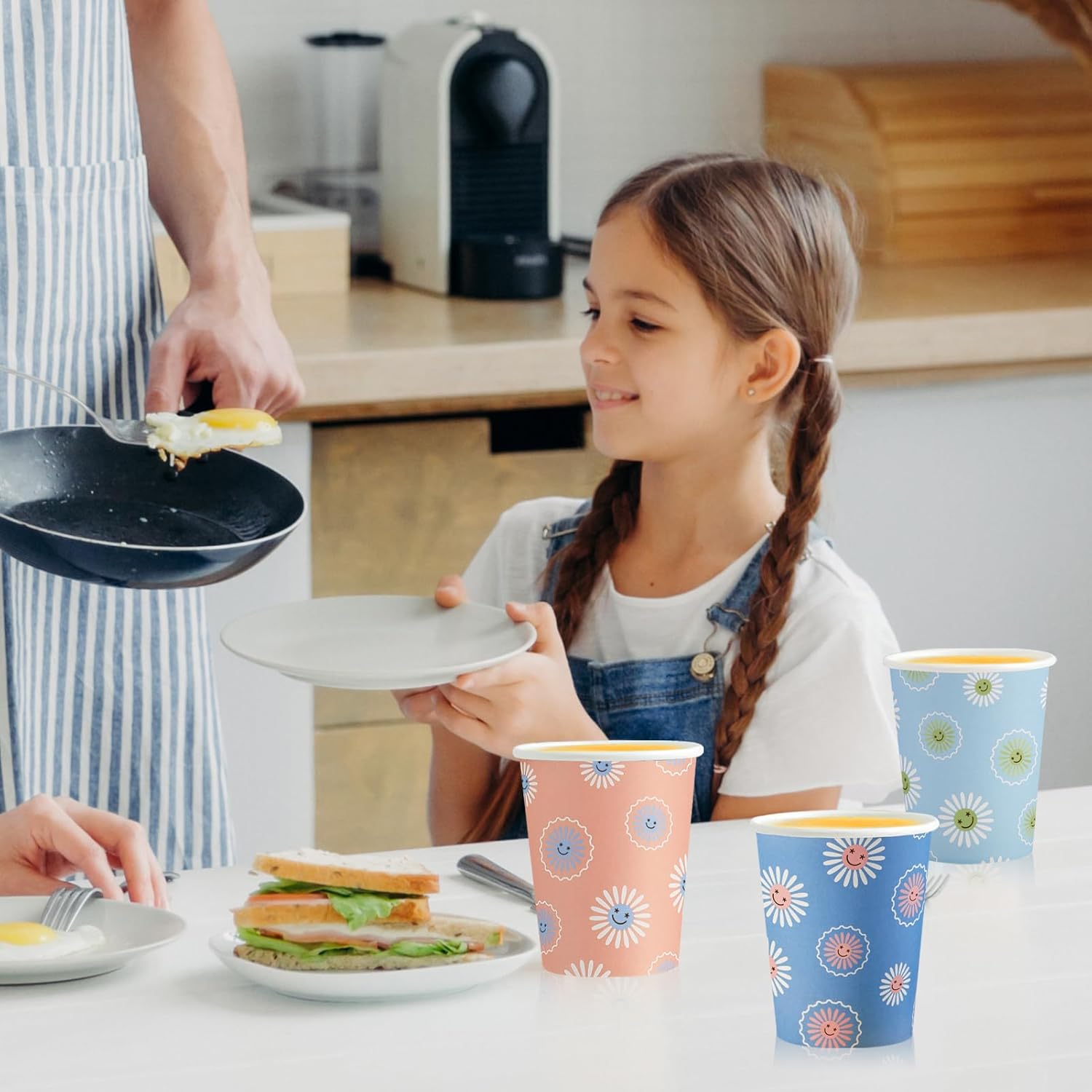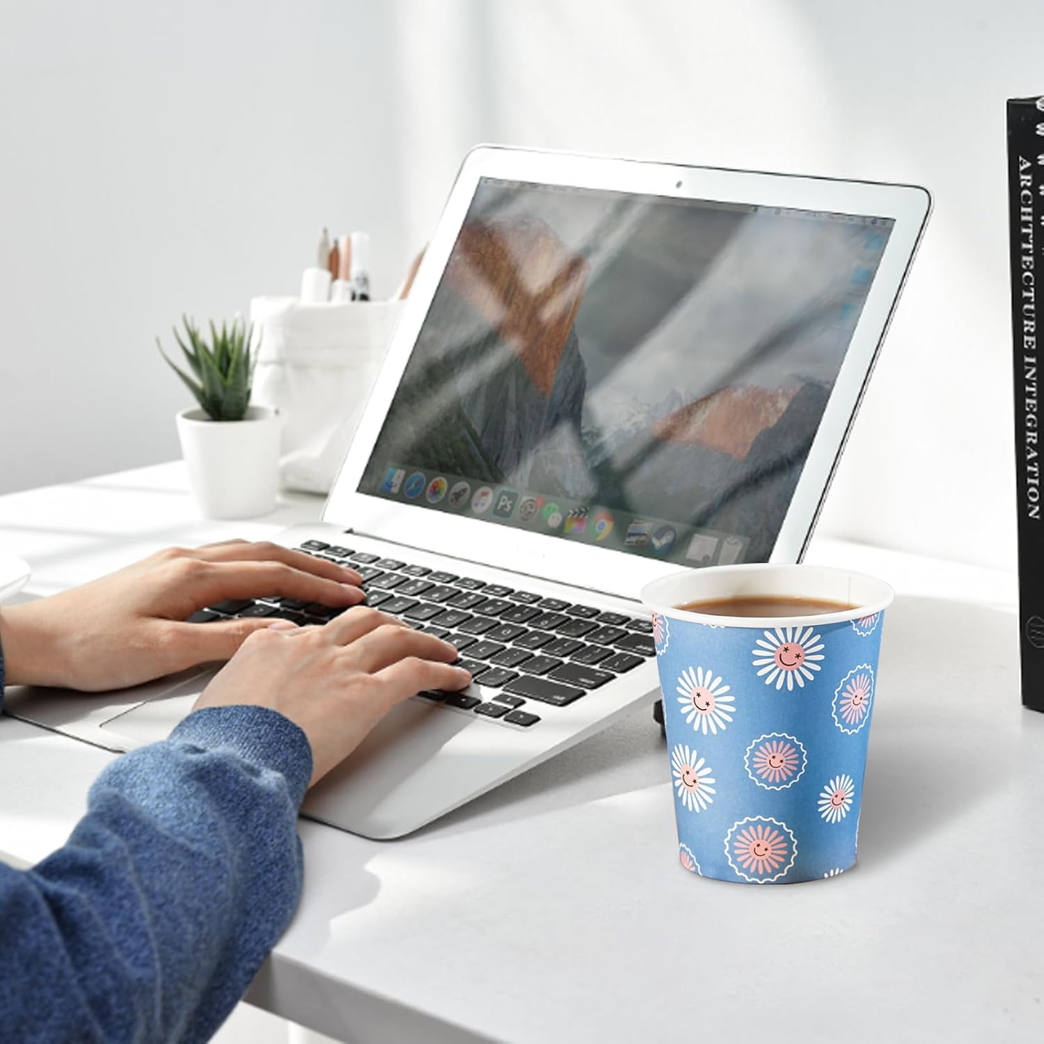300 Pack Paper Cups 8 oz, Disposable Coffee Cups, Paper Coffee Cups 8 oz, Colourful Hot/Cold Beverage Drinking Cup for Water Juice or Tea, Office Party Home Travel - Daisy