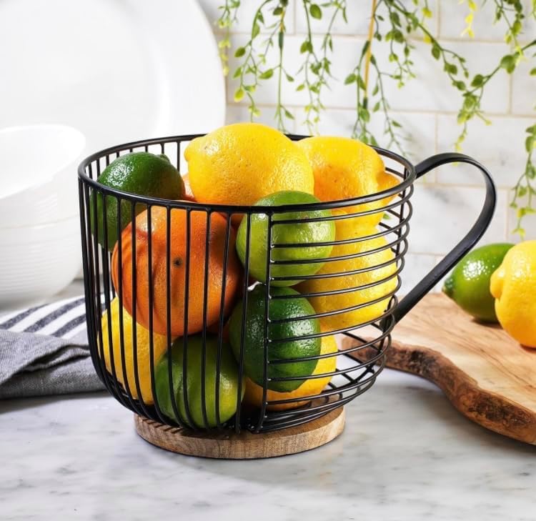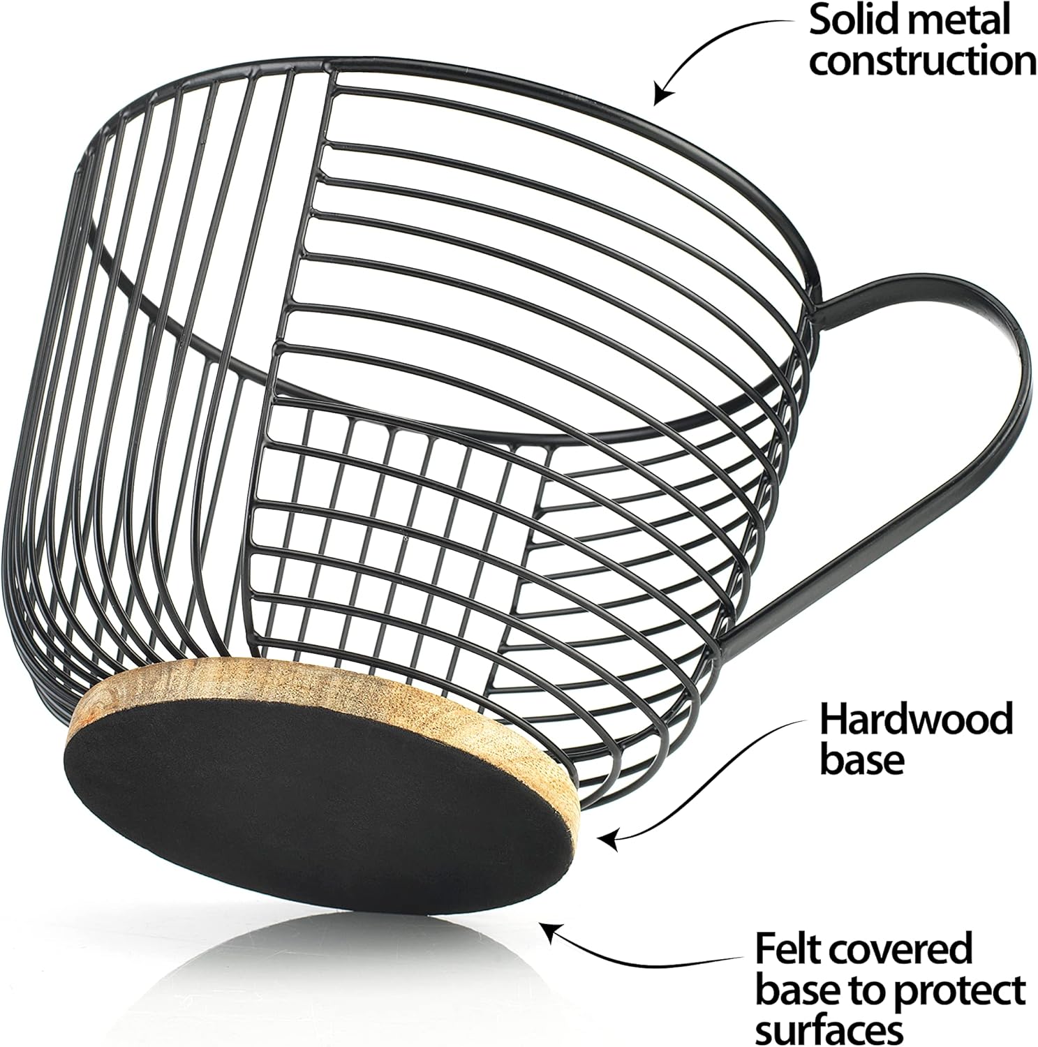 Coffee Pod Holder - Large Capacity Black Wire K Cup Storage with Wooden Base - Modern Coffee Basket Decor for Kitchen Countertop for Keurig Kcups & Espresso Capsules
