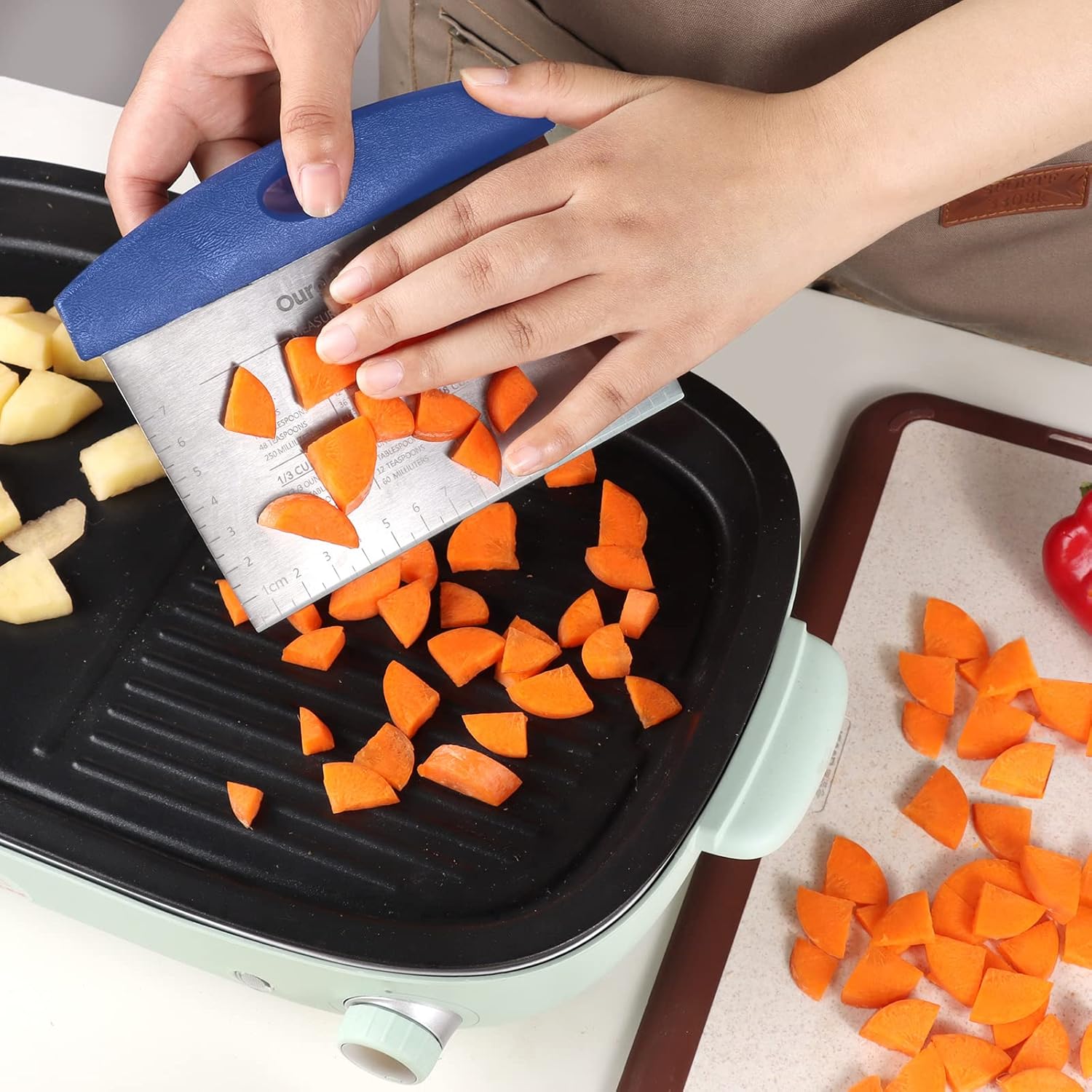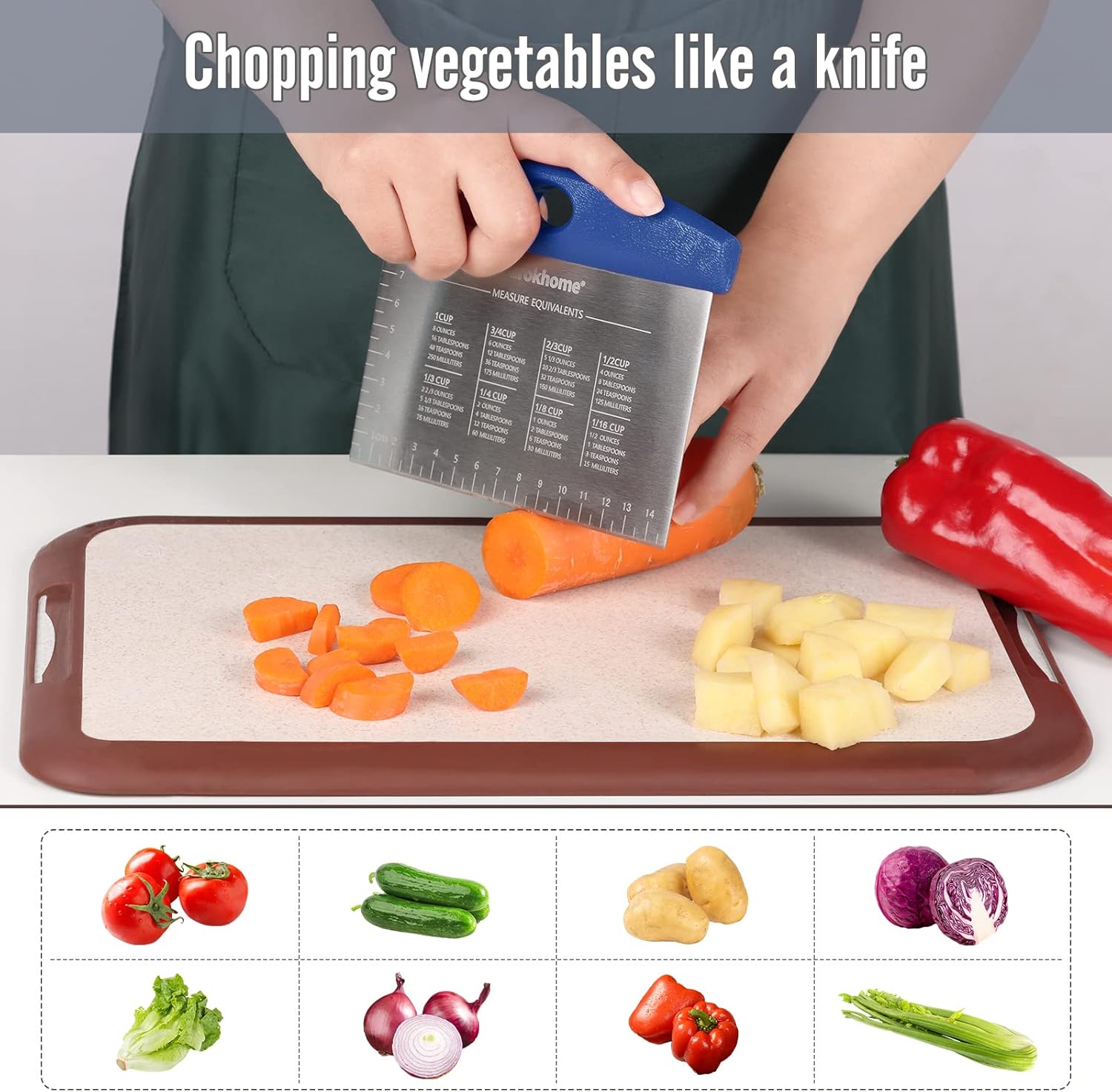 - Multipurpose dough scraper: Whether you’re dividing pastry dough, slicing pizza, chopping even the hard veggies, smoothing cake, or scooping up chopped veggies from the board, it can complete tasks like a charm
