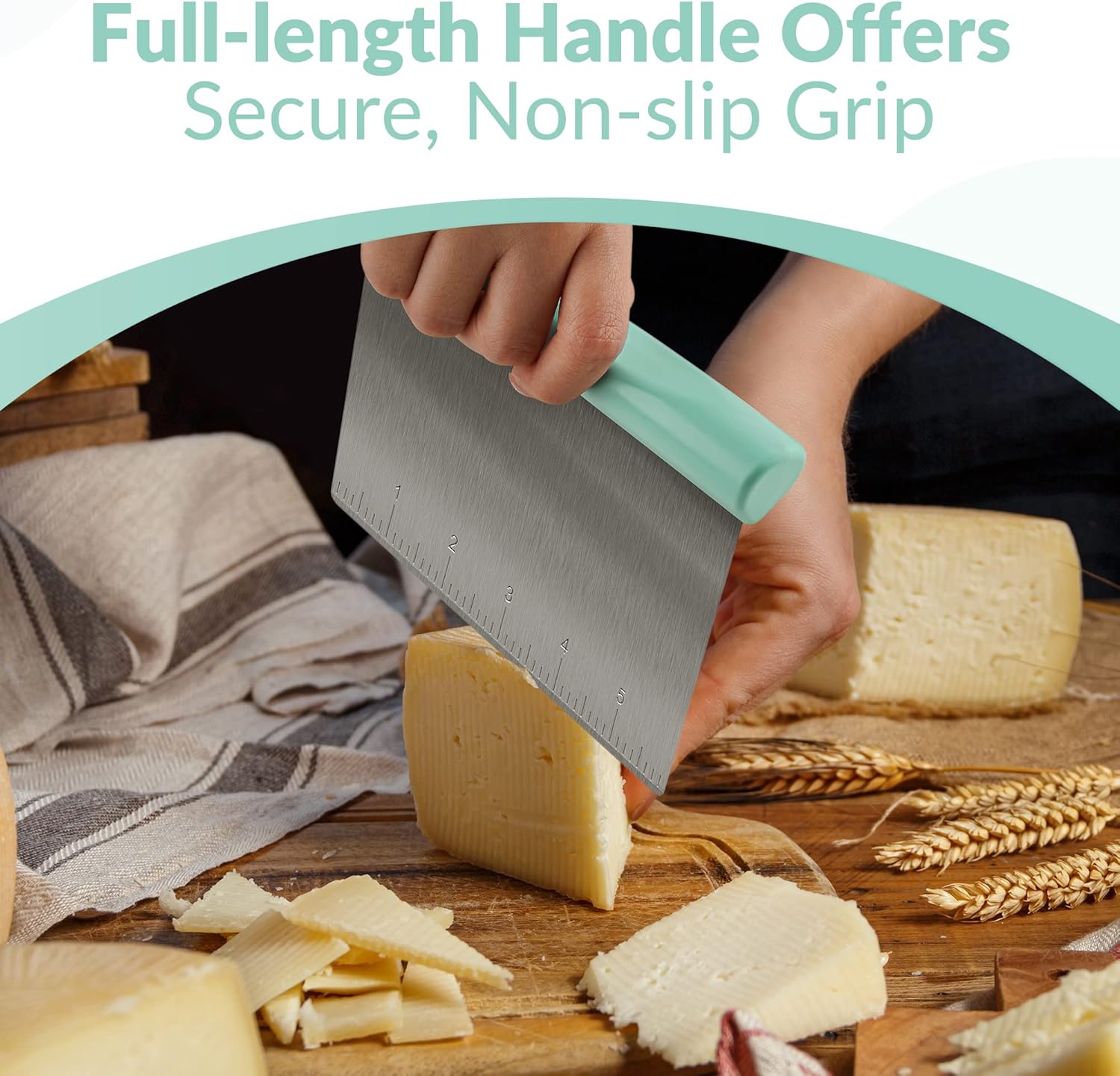 - Multi-purpose scraper/chopper tool - Great for cutting dough, sectioning crusts, scraping baking sheets, chopping veggies and more