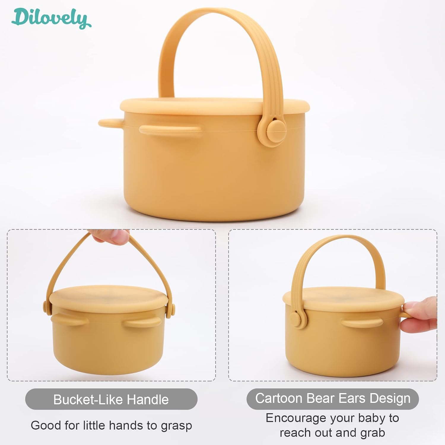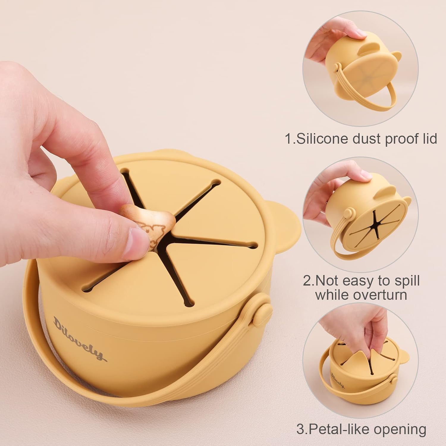 - SAFE FOR BABY: The Dilovely snack cups for baby is made out of food grade silicone, free from BPA, BPS, PVC, lead & phthalates. This kids snack container thoroughly tested by a third-party lab. Safe baby essential for self-feeding.