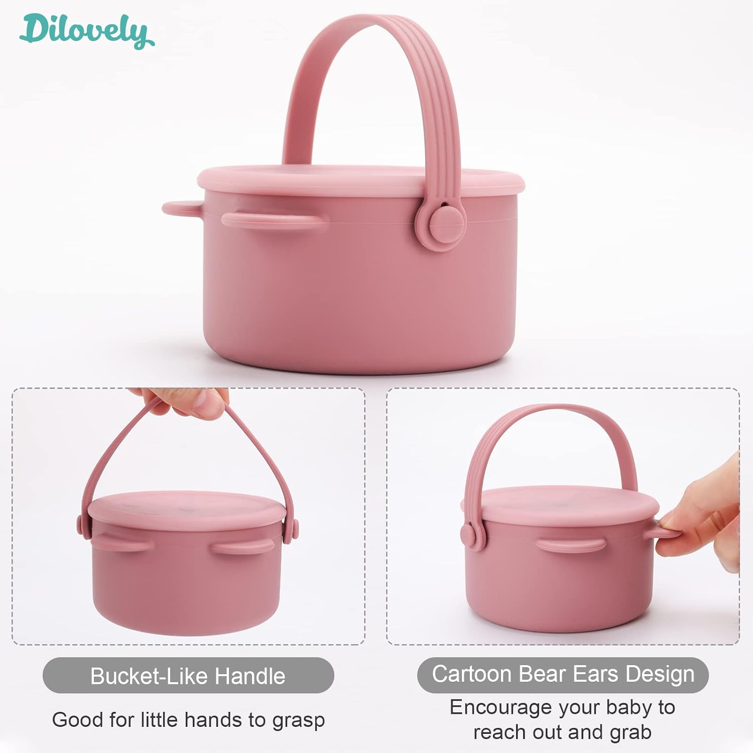 - SAFE FOR BABY: The Dilovely snack cups for baby is made out of food grade silicone, free from BPA, BPS, PVC, lead & phthalates. This kids snack container thoroughly tested by a third-party lab. Safe baby essential for self-feeding.