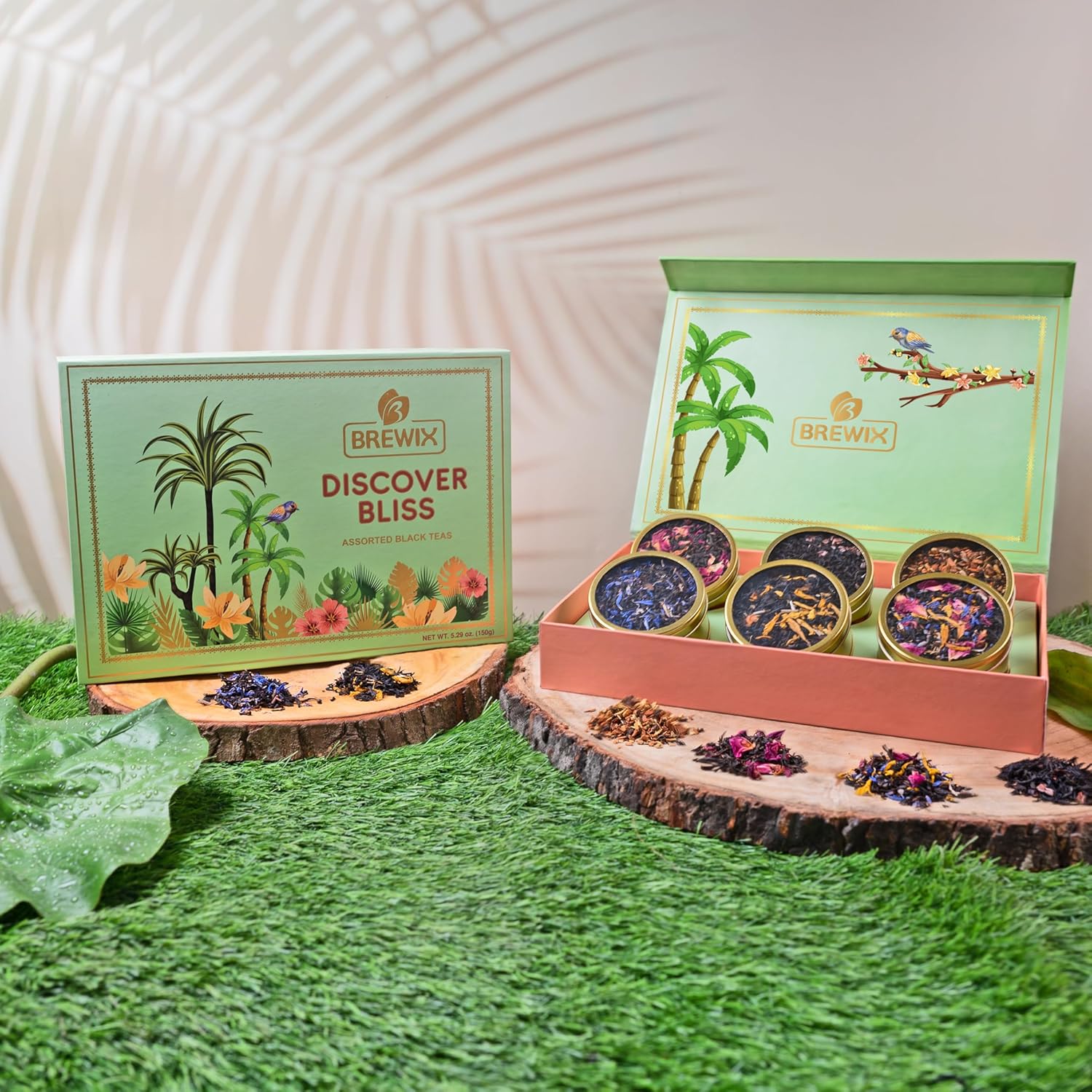 BREWIX, Discover Bliss Premium Assorted Tea Gift Set for Women (6 Premium Teas / 75+ Cup) | Tea Gift Sets For Tea Lover | Tin Caddy Presentation Box | Gifts for Her | Gifts for Women