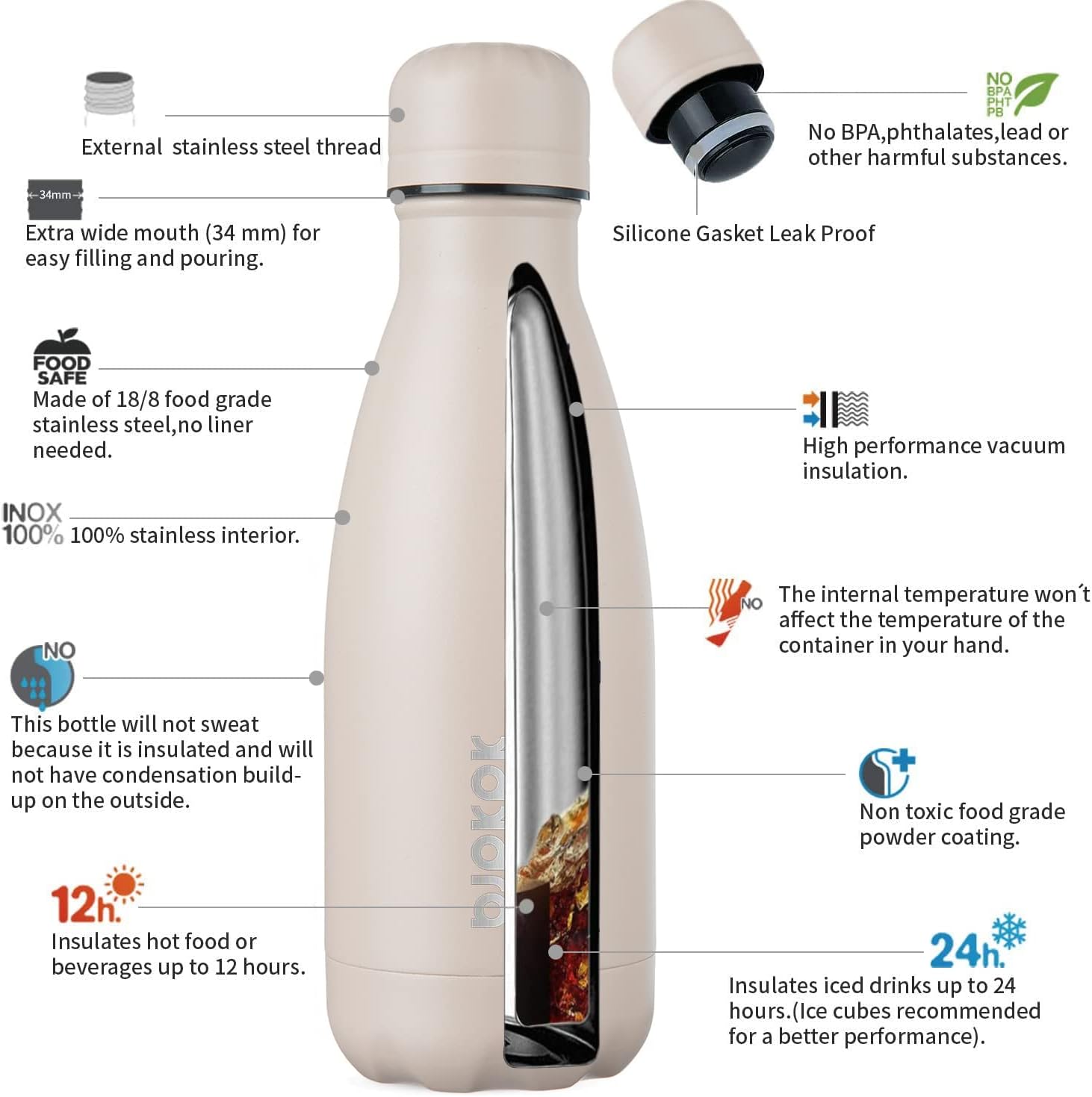 - Keep Drinks Cold & Hot: Adopt double wall vacuum insulation design, keep your drinks ice cold for 24 hours and hot for 12 hours within our highly performed insulated water bottle