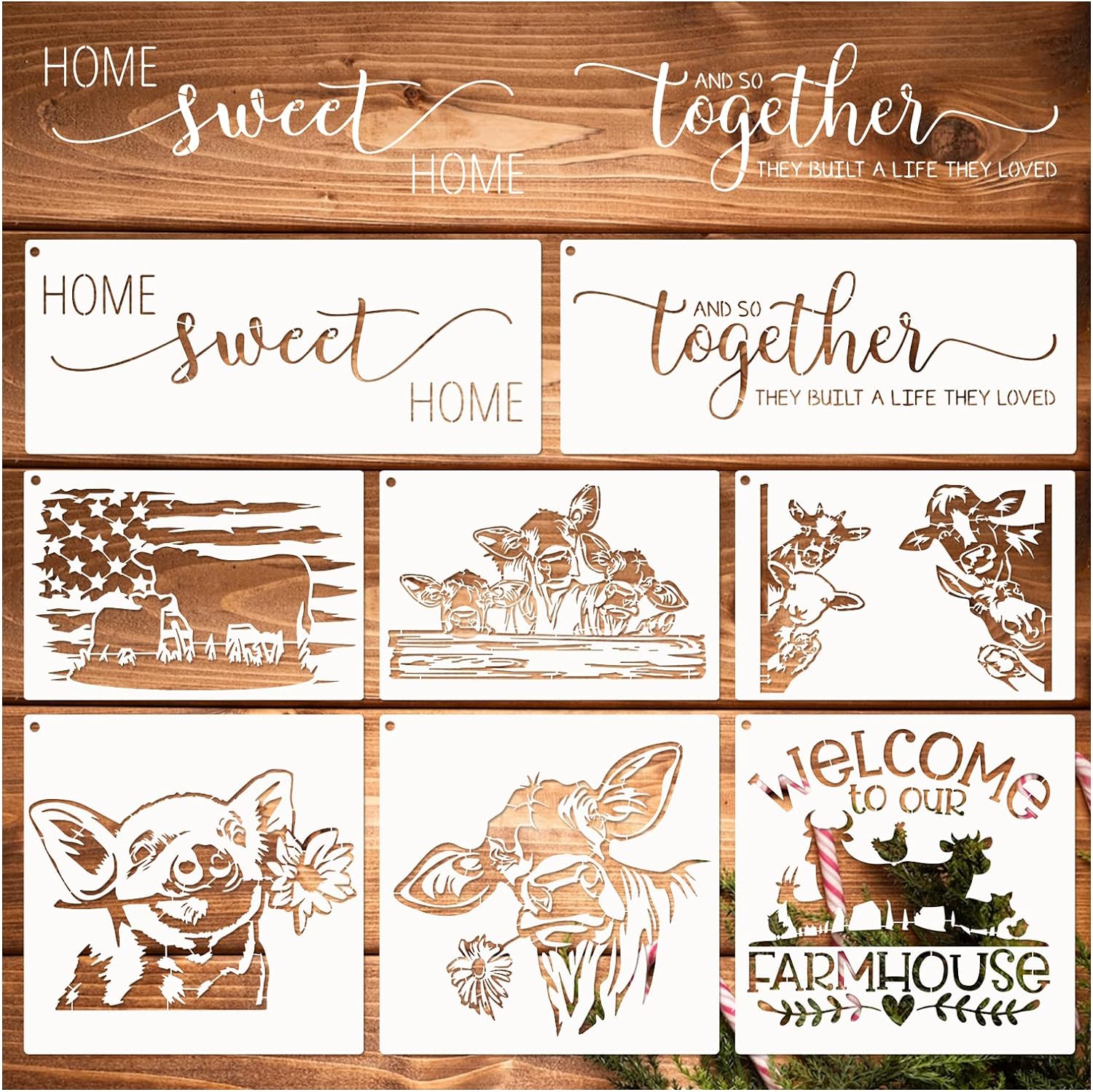 - Farm Theme Element: Our reusable farm painting stencils are featuring with various farm element, including cow with flower, pig, home sweet home, welcome to our farmhouse, USA cow, and so together they built a life they, and more, you can mix them into different combinations for decor your farmhouse, make your home more beautiful.