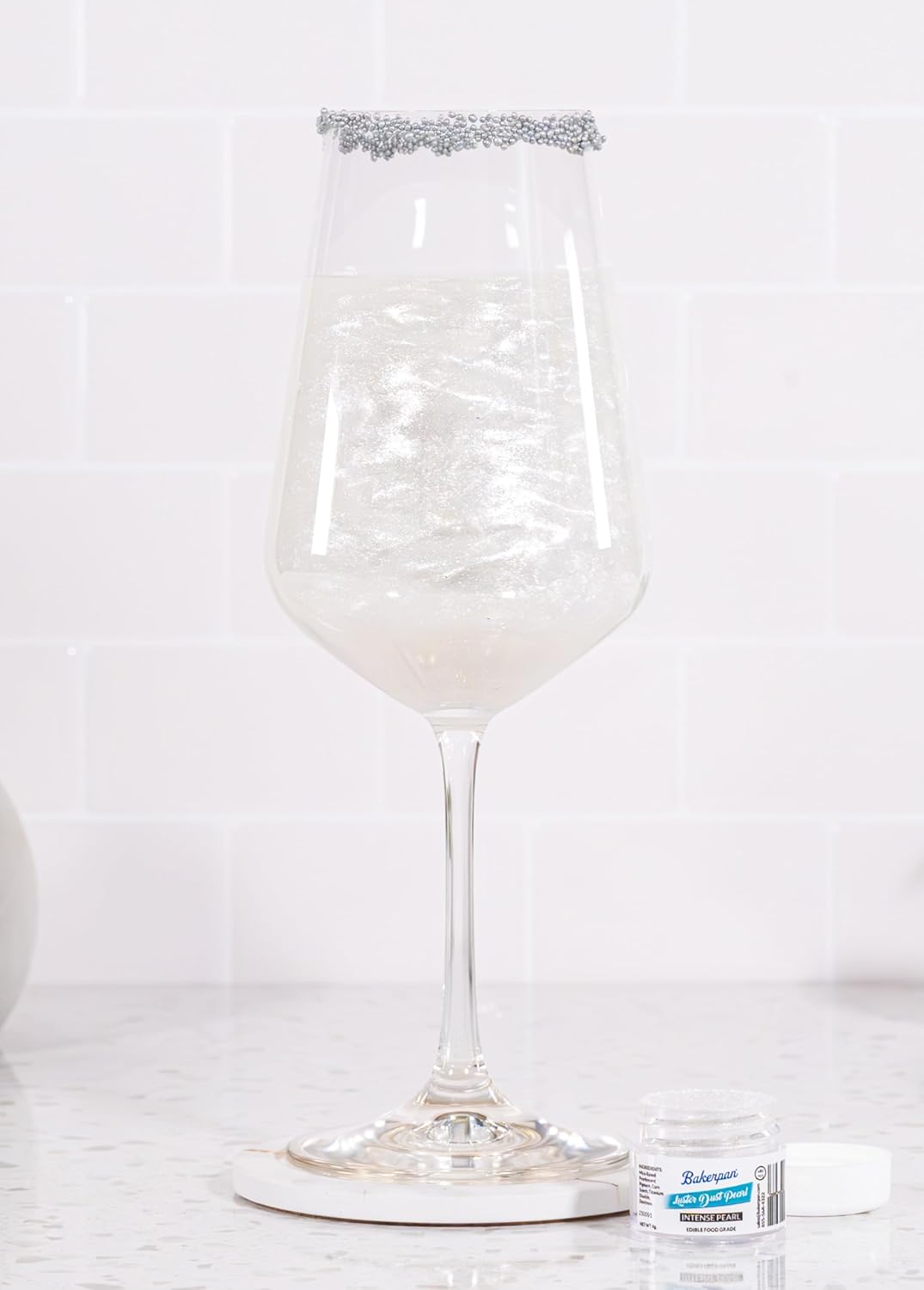 Bakerpan Pearl Luster Dust Edible, Intense White Edible Glitter for Cocktails, 4 Grams Edible Glitter for Cake Decorating, Cookies, Chocolates and Candies, Drinks (Made in USA)