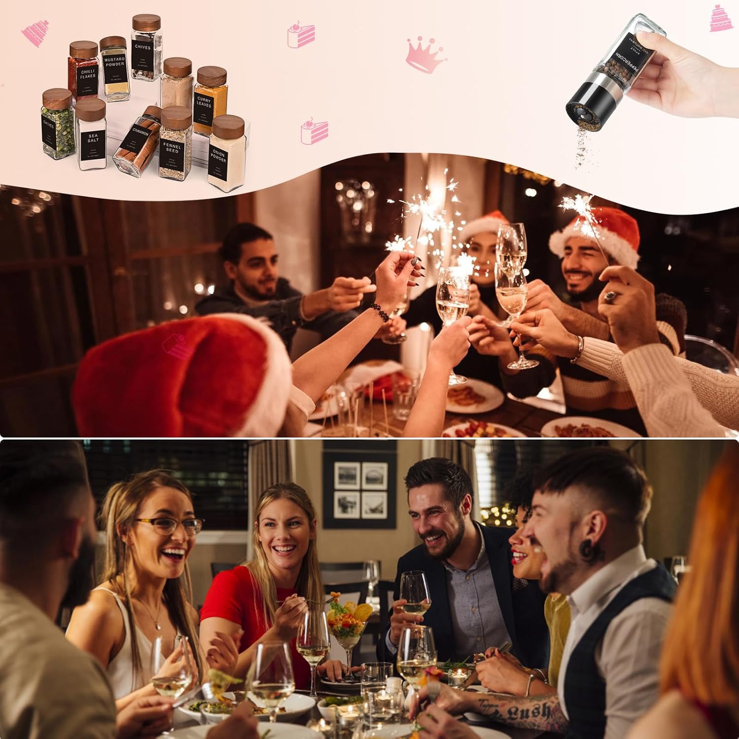 - 【HIGH QUALITY MATERIAL】These spice jars are made of thickened glass, not only more sturdy and resistant, but also have high transparency,so there is no need to open the lid to check the use of spices and helps keep the spices fresh.