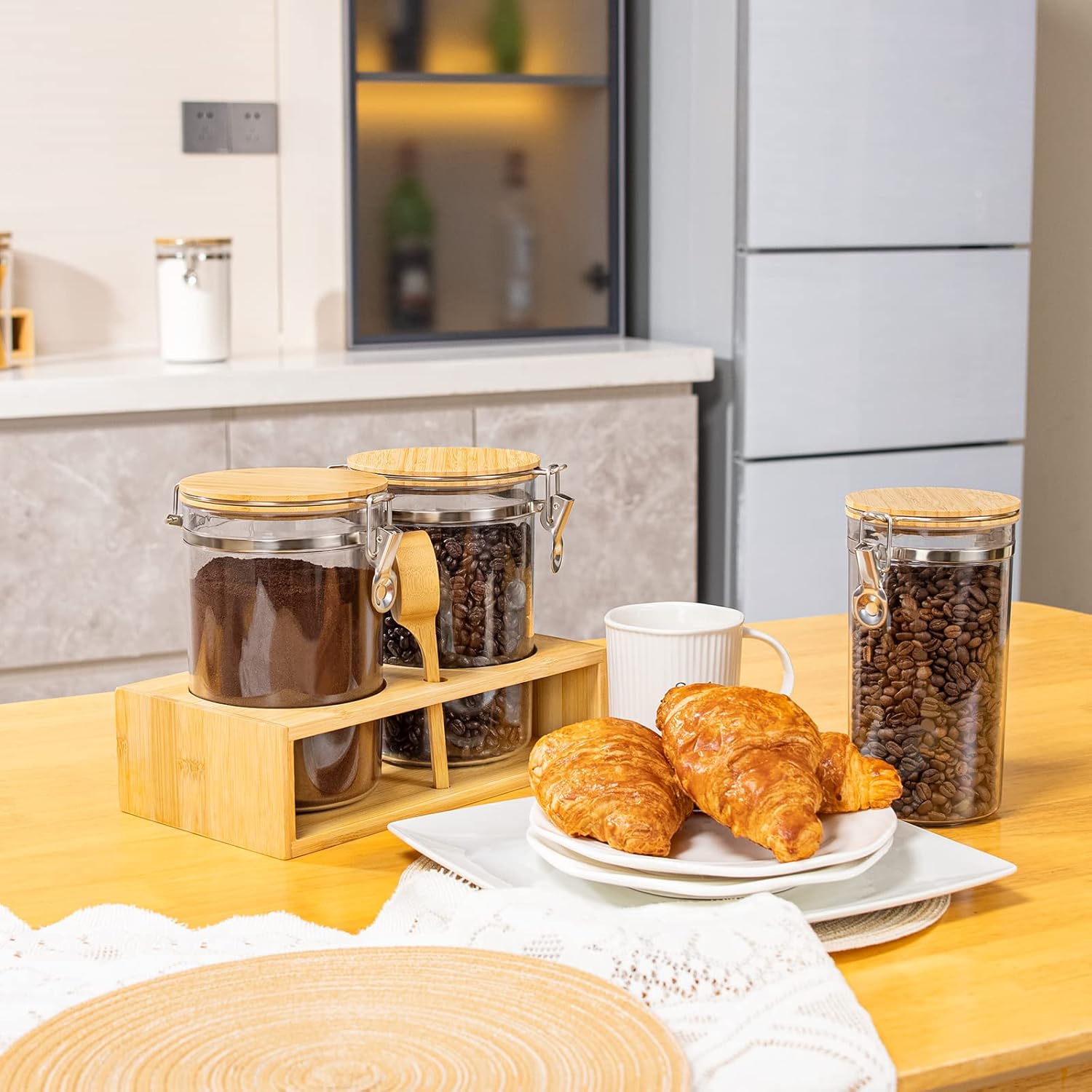Yangbaga Coffee Container for Ground Coffee,2×58OZ Storage Containers with Shelf & Scoop,Plastics Airtight Coffee Canisters for Ground Coffee Bean,Food Storage Jars for Kitchen,Nuts,Tea,Sugar