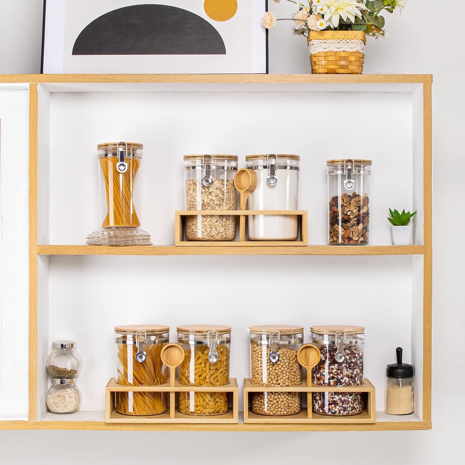 - COFFEE BAR ORGANIZER:There is a wooden spoon for food scooping. After you use the spoon.And you can put it directly on the log holder without messing up the tabletop.The lid, spoon and stand are the same color which could be a great decor.
