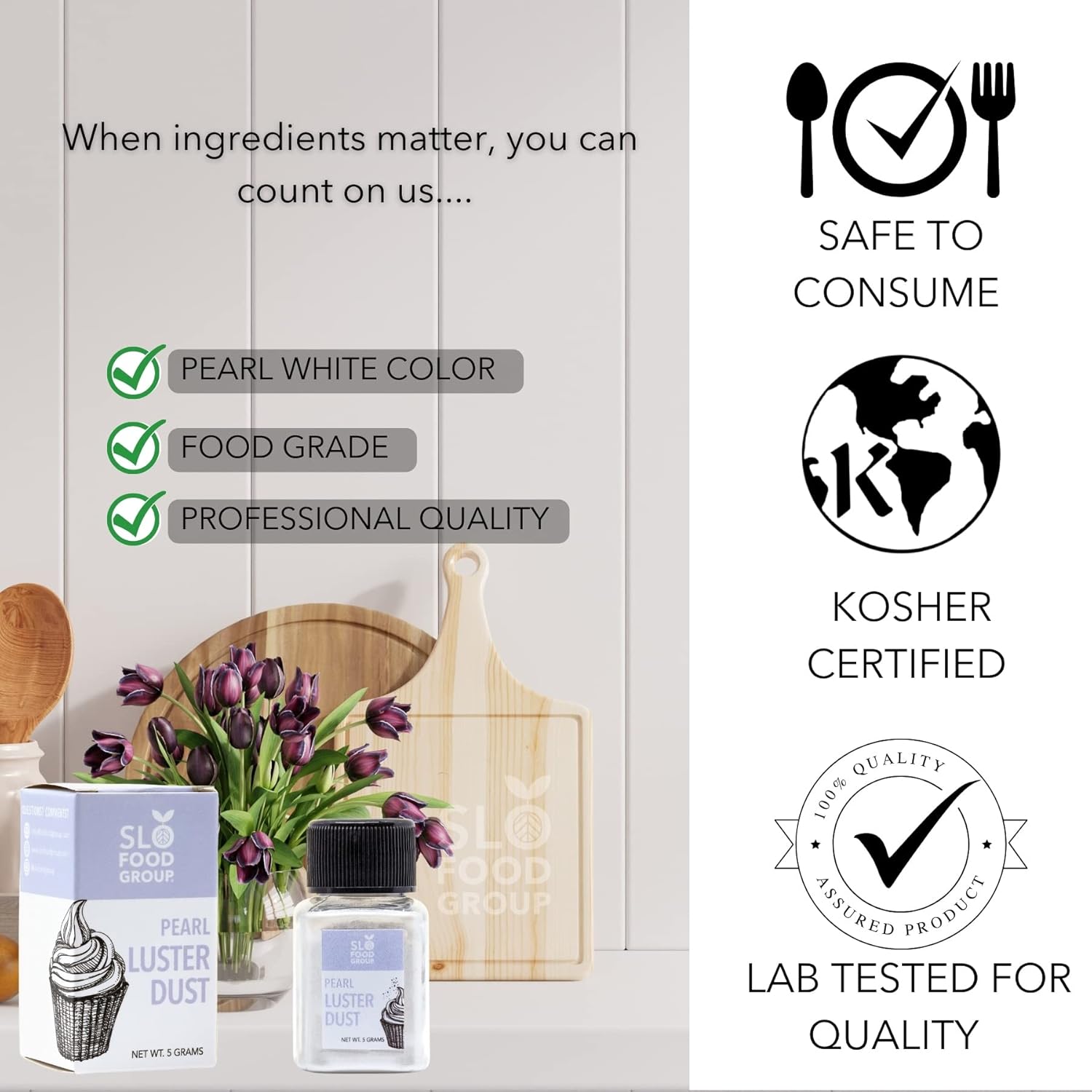 Slofoodgroup Pearl Luster Dust| Pearl White Colored Edible Glitter, 5 Gram Bottle
