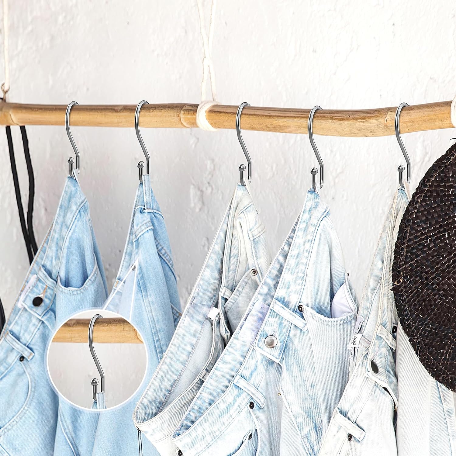 - Versatile Hooks: S shaped hooks holds well for pots and pans, oven mitts, mugs, towels, curtains, pants, caps, tools, crafts, plants, baskets, wreaths, garlands; can be used around the house like pantry, kitchen, bathroom, laundry, garden, garage, camper, RV, trellis, fence, gutter, deck; functional storage hooks with many uses, really serve its purpose
