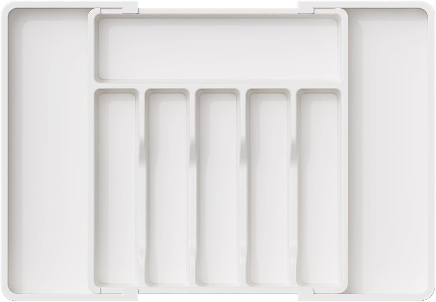 Lifewit Silverware Drawer Organizer, Expandable Utensil Tray for Kitchen, BPA Free Flatware and Cutlery Holder, Adjustable Plastic Storage for Spoons Forks Knives, Large, White