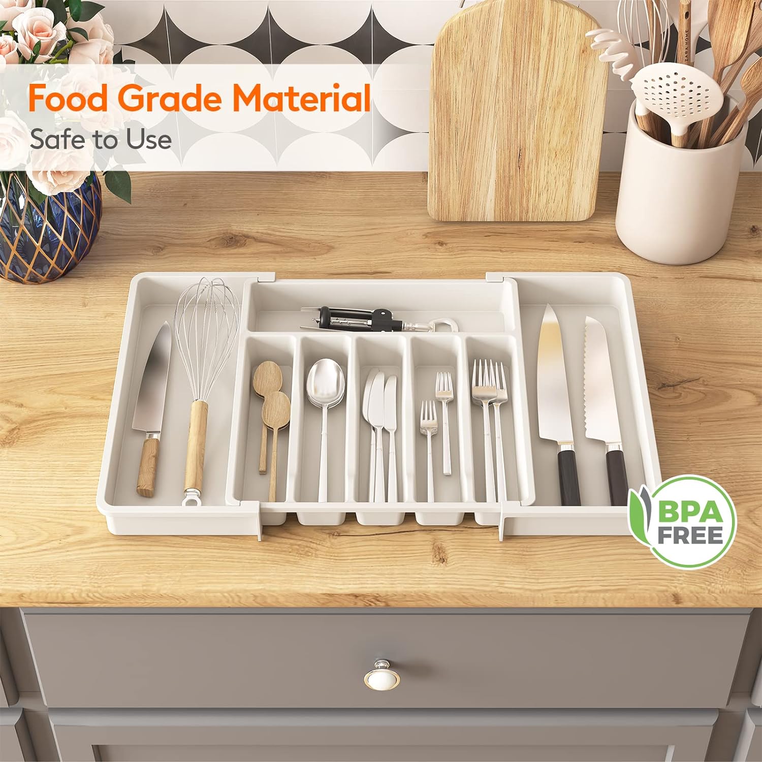 - Robust and Safe: This kitchen drawer organizer is crafted from premium PP material, BPA-free and built to last. It ensures your silverware is stored in a healthy, safe environment for worry-free use