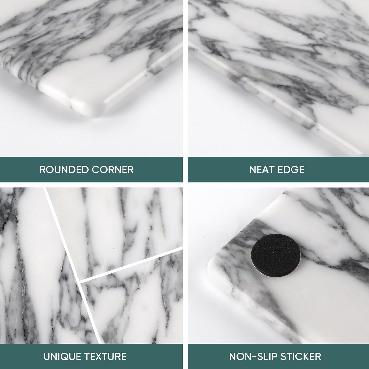 - Unique of Each Piece: White base color but not greasy, with a smooth and well-coordinated gray texture. Elegant and atmospheric as Arabescato marble tray looks like a natural landscape painting, returning to the original in the pursuit of nature's beauty. The different distribution and presentation of natural stone crystals and textures make each piece unique.