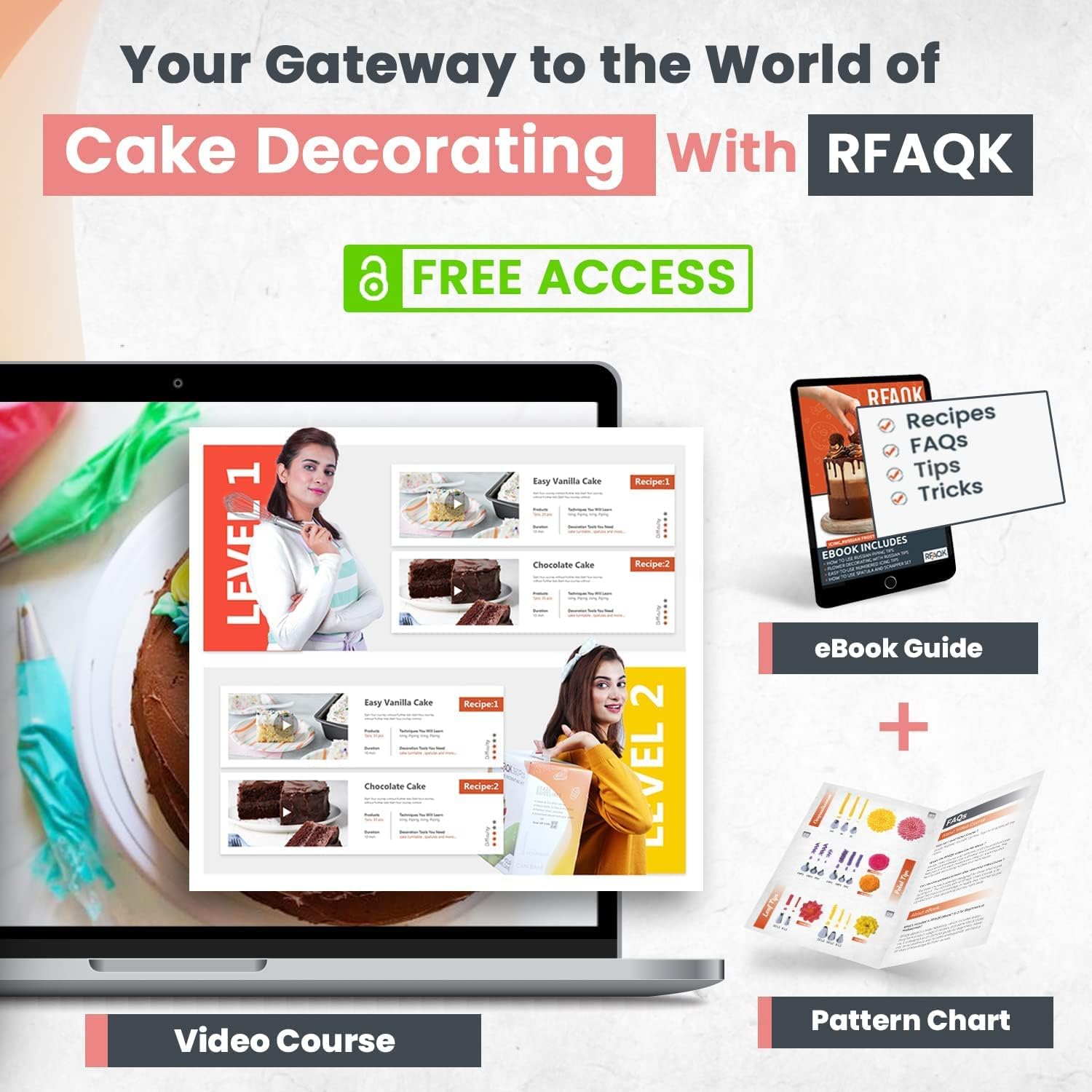 - Essential Cake Decorating Tools: Getting ready to decorate but not sure what tools you need? RFAQK offers a complete baking supplies set that includes everything you need to start decorating Cakes like a PRO! 48 Numbered Easy to Use icing tips with an E-Book in PDF (User Guide for beginners) & Booklet showing the outcome of each Icing Nozzle, 2 Coupler, 20 disposable icing bags, 1 Reusable pastry bag, 1 Flower nail & lifter, Cleaning brush, a Storage box that keeps everything organized