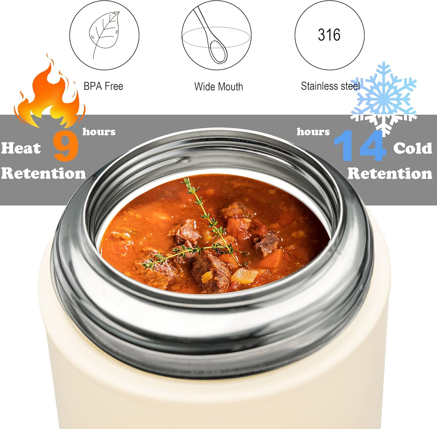 - Uber-tight Seal:Thermo for hot food have maximum temperature retention for hot and cold food or drinks. Insure that you will enjoy a hot homemade meal after Long hours at work, endless errands or on an occasional day trip.