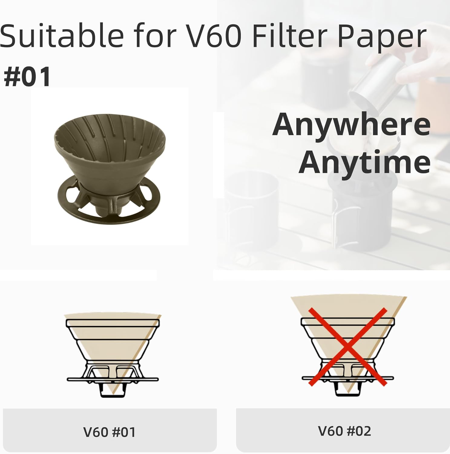 - EASY TO STORE AND CARRY: The coffee dripper is lightweight and collapsible. The foldable design can save a lot of space. It is only 1.1"H after folding, which is easy to store and carry. Perfect for your camping, travel, business trip, home and office.