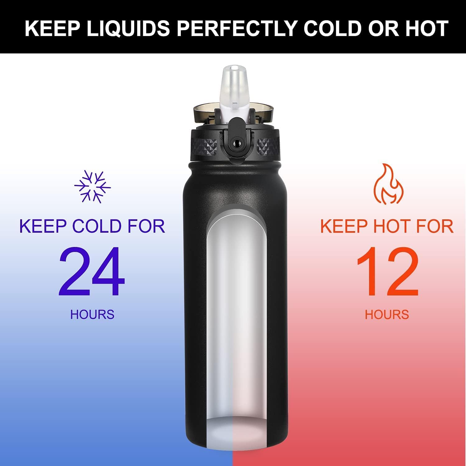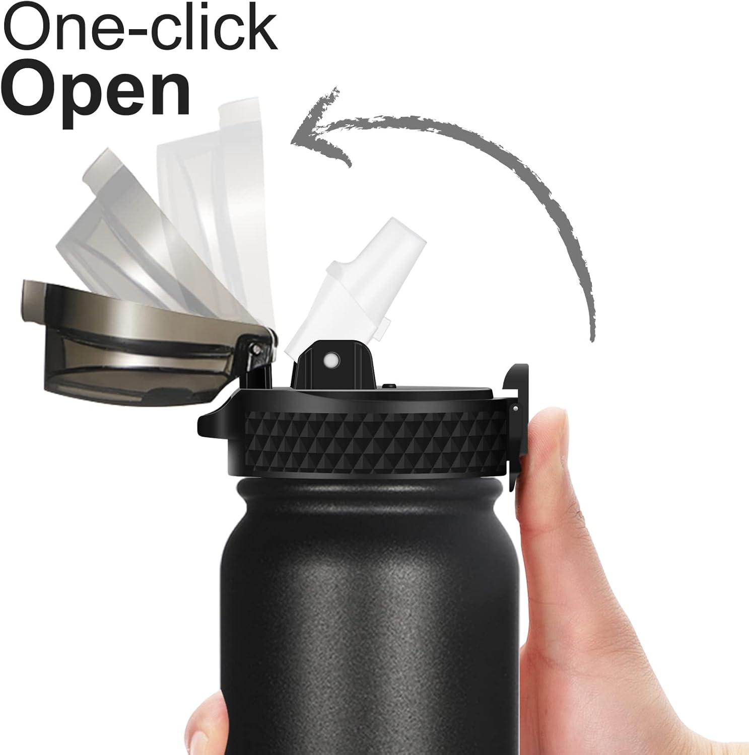 GOPPUS 20oz Insulated Stainless Steel Water Bottle with Straw Lid Reusable Leakproof Water Flask, Keeps Hot and Cold Sports Canteen Water Bottles for Kids Men Women Gym (Black 1 Lid)