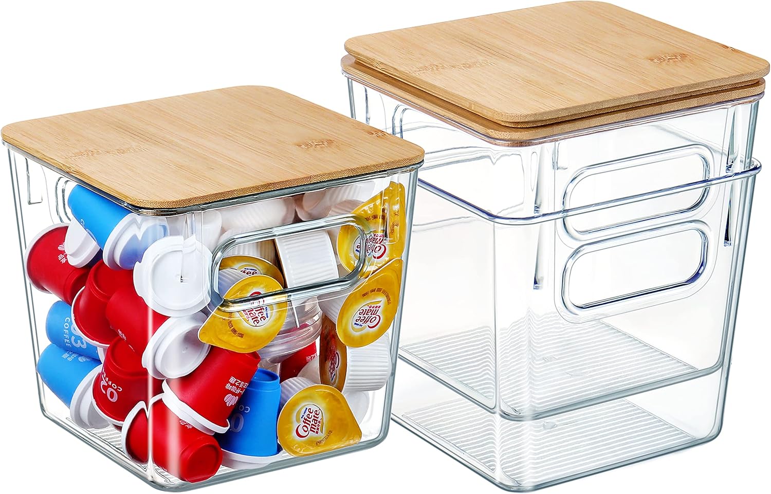 Coffee Pod Holder with Bamboo Lids, 3 PACK K Cup Organizer Large Capacity Coffee Bar Organization and Storage