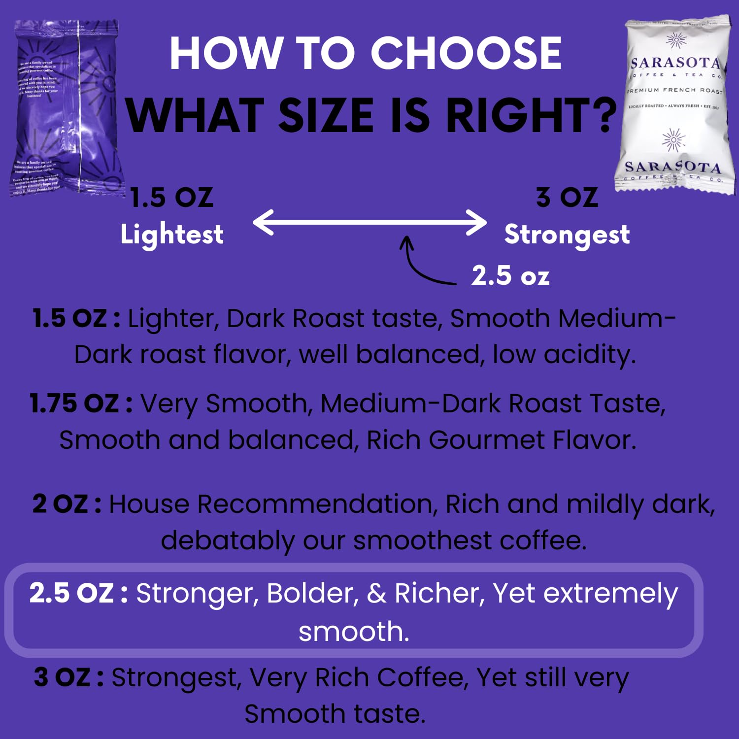 Sarasota Coffee Ground Packets | Low Acid Dark Roast Ground Coffee Packs | European French Roast | Mold Free Coffee Singles Packets | Ground Coffee Pouches | Individual Coffee Packets for 12 Cup Coffee Maker | 2.5 Ounce Bags, 36 Count