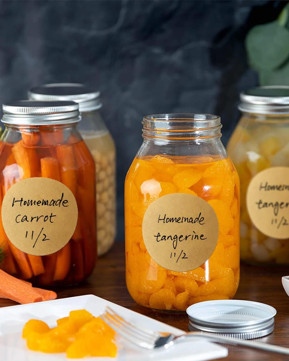2 Inch Natural Brown Kraft Stickers (500 Per Roll), Round Blank Labels for Jars and Lid, Permanent Adhesive Kraft Stickers, Mason Jar Bottle Canning Labels