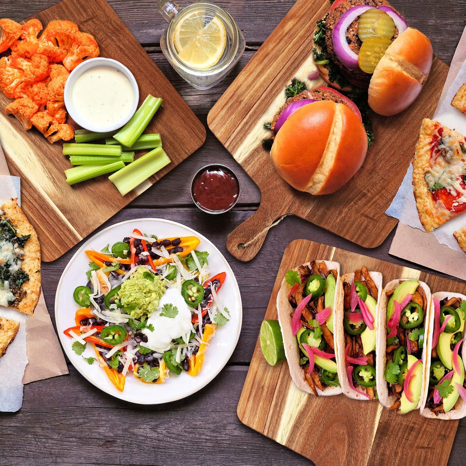 - Wide Application: enjoying nice durability, with a smooth and durable texture, these wooden cutting boards for kitchen are ideal for efficiently and cleanly cut your meat, fruits and vegetables without any trouble, and also can be served for cheese, bread, steaks or charcuterie; They are also ideal gifts for Mother's Day and housewarming parties, a versatile product for your daily using, crating a greener life to you and your family