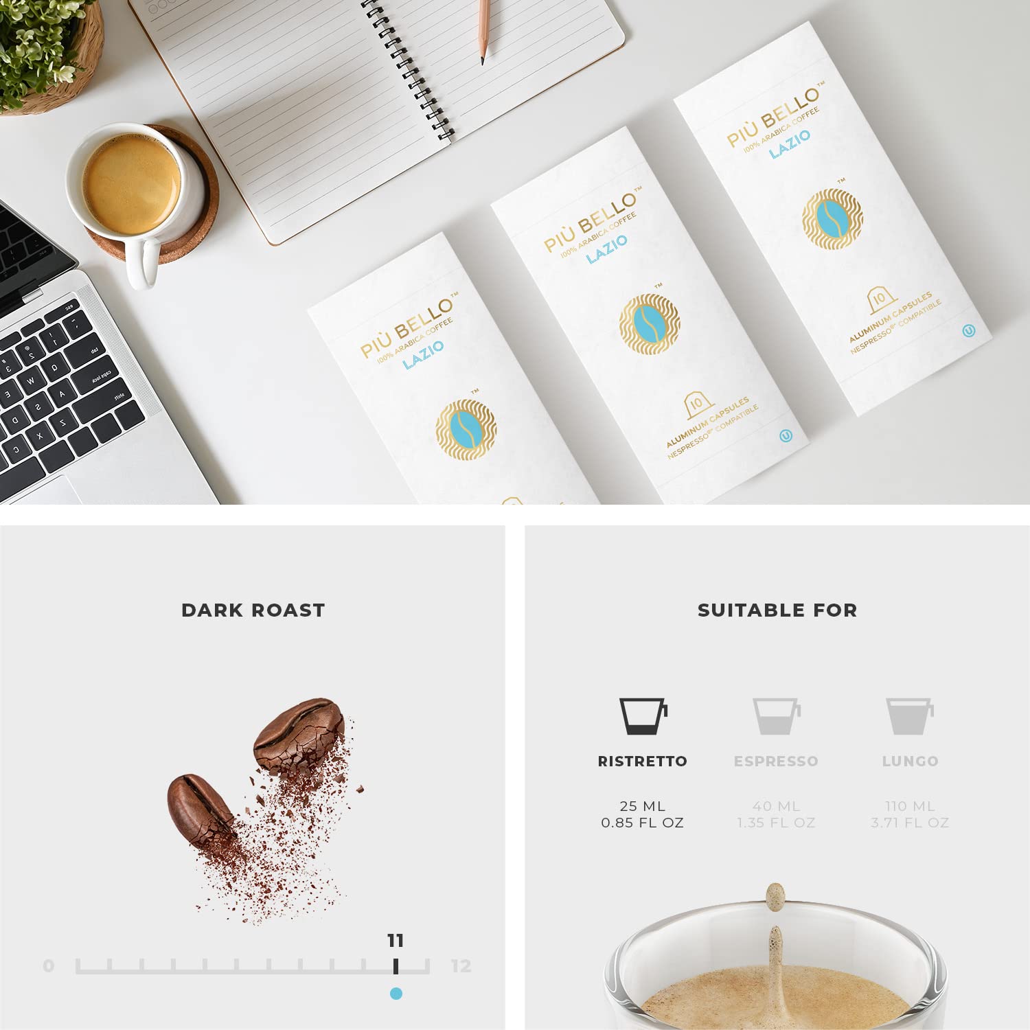 - NESPRESSO COMPATIBLE PODS - Enjoy delicious cafe quality roasted coffee, brewed fast and poured steaming hot & fresh directly into your awaiting cup. Piu Bello Nespresso capsules are compatible with Nespresso Original line espresso machine.