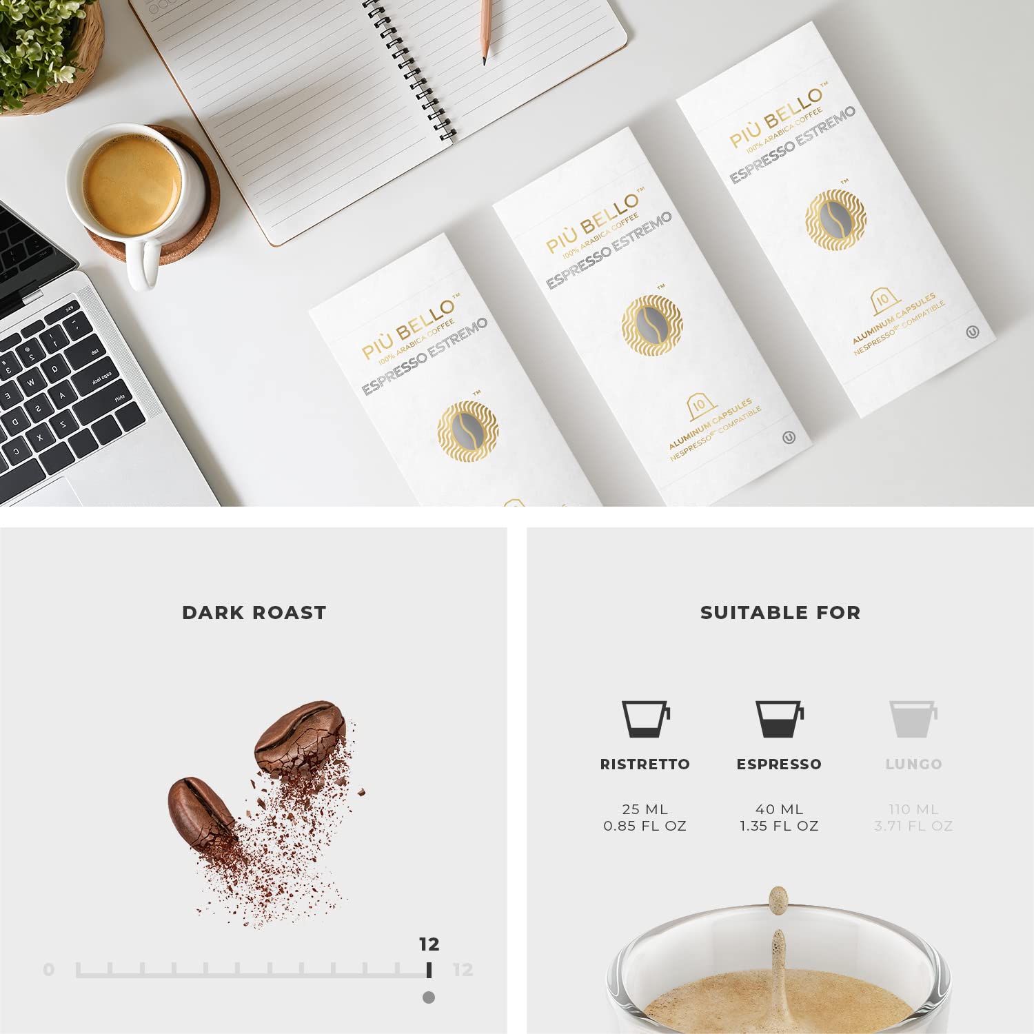 Piu Bello Espresso Estremo Coffee Pods – Espresso Coffee Pods for Nespresso Original Machines – Compatible Capsules Pack – Rich & Balanced Taste – Strong Italian Espresso Flavor – Kosher Certified (60 Count, Single Flavor)