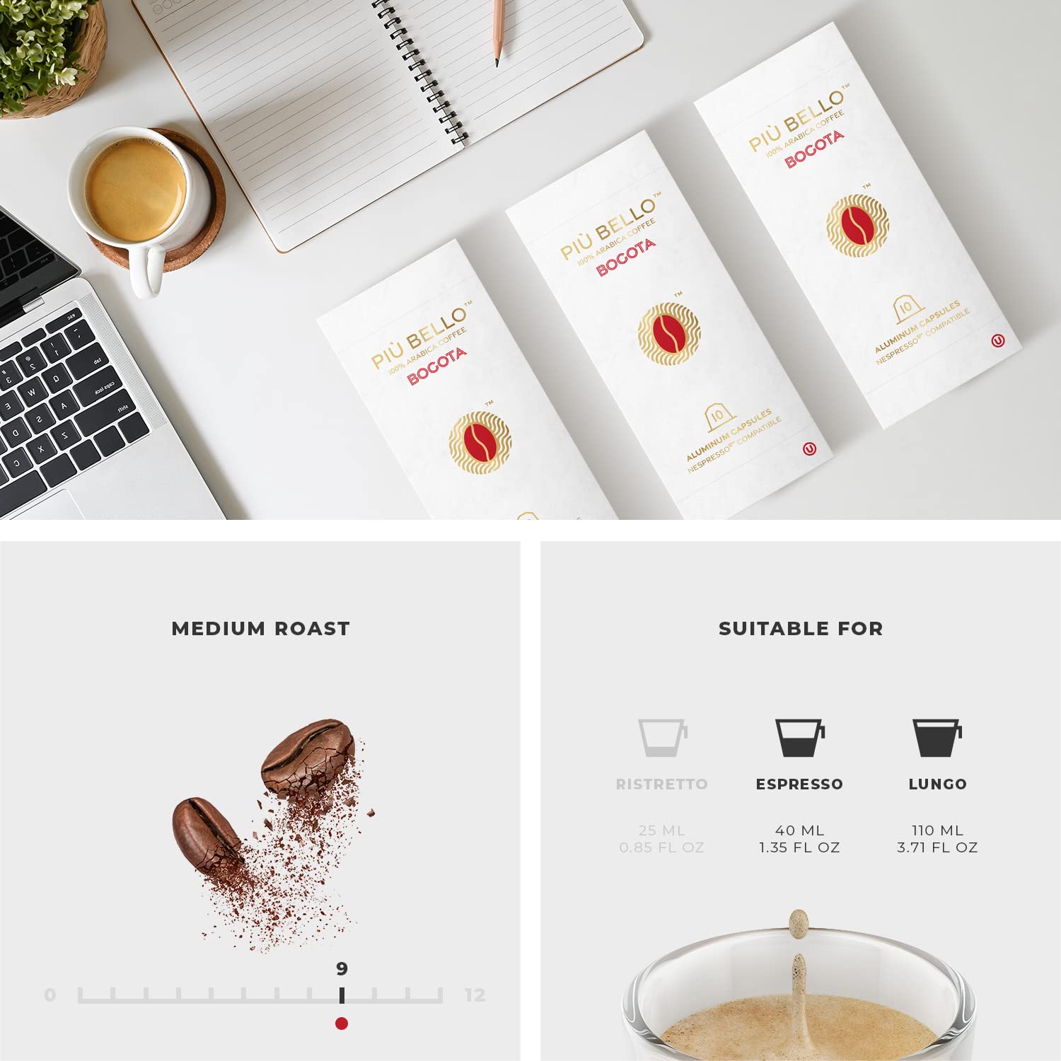 - NESPRESSO COMPATIBLE PODS - Enjoy delicious cafe quality roasted coffee, brewed fast and poured steaming hot & fresh directly into your awaiting cup. Piu Bello Nespresso capsules are compatible with Nespresso Original line espresso machine.