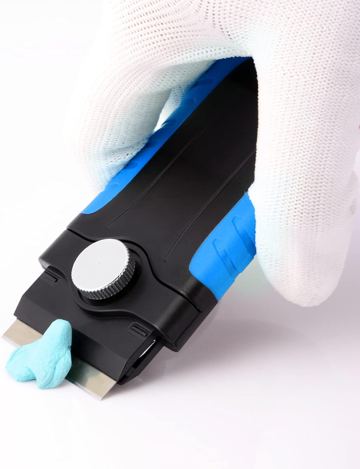 Gomake Razor Blade Scraper Tool with Blade Storage Container, Glass Cooktop Stove Scraper with 10PCS Stainless Steel Blades for Glass Clean,Paint,Old Label,Decal Sticker,Adhesive Remover (Blue)
