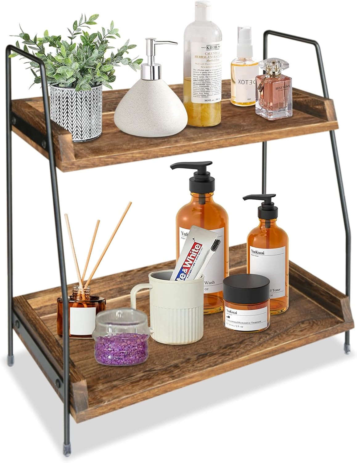 Yusepure Coffee Bar Accessories and Organizer Countertop, Coffee Station Organizer Kitchen Counter Shelf Organizer,Coffee Condiment Storage,Cup Lid Holder Countertop Shelf for Bathroom (Dark Brown)