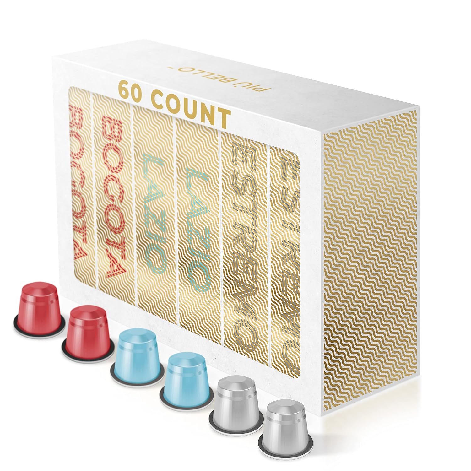 Piu Bello Espresso Coffee Pods for Nespresso Original Machines – Variety Pack – Compatible Capsules with 3 Intense Flavors – Dark Roast, Low Acidity – Rich & Balanced Taste – Kosher (3-Flavor Multipack, 60 Count)