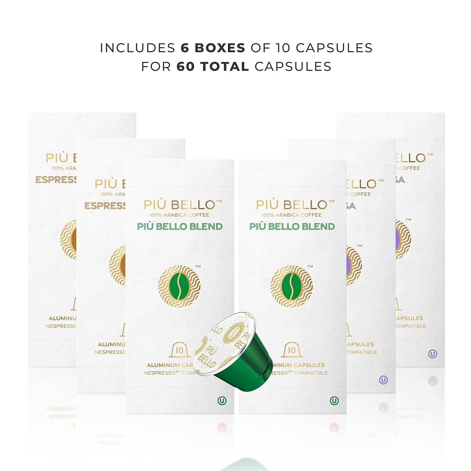 Piu Bello Espresso Coffee Pods for Nespresso Original Machines – Variety Pack – 3 Light Flavors: Chocolate, Nuts, Sweet Caramel – Rich & Balanced Taste, Kosher (3-Flavor Multipack, 60 Count)