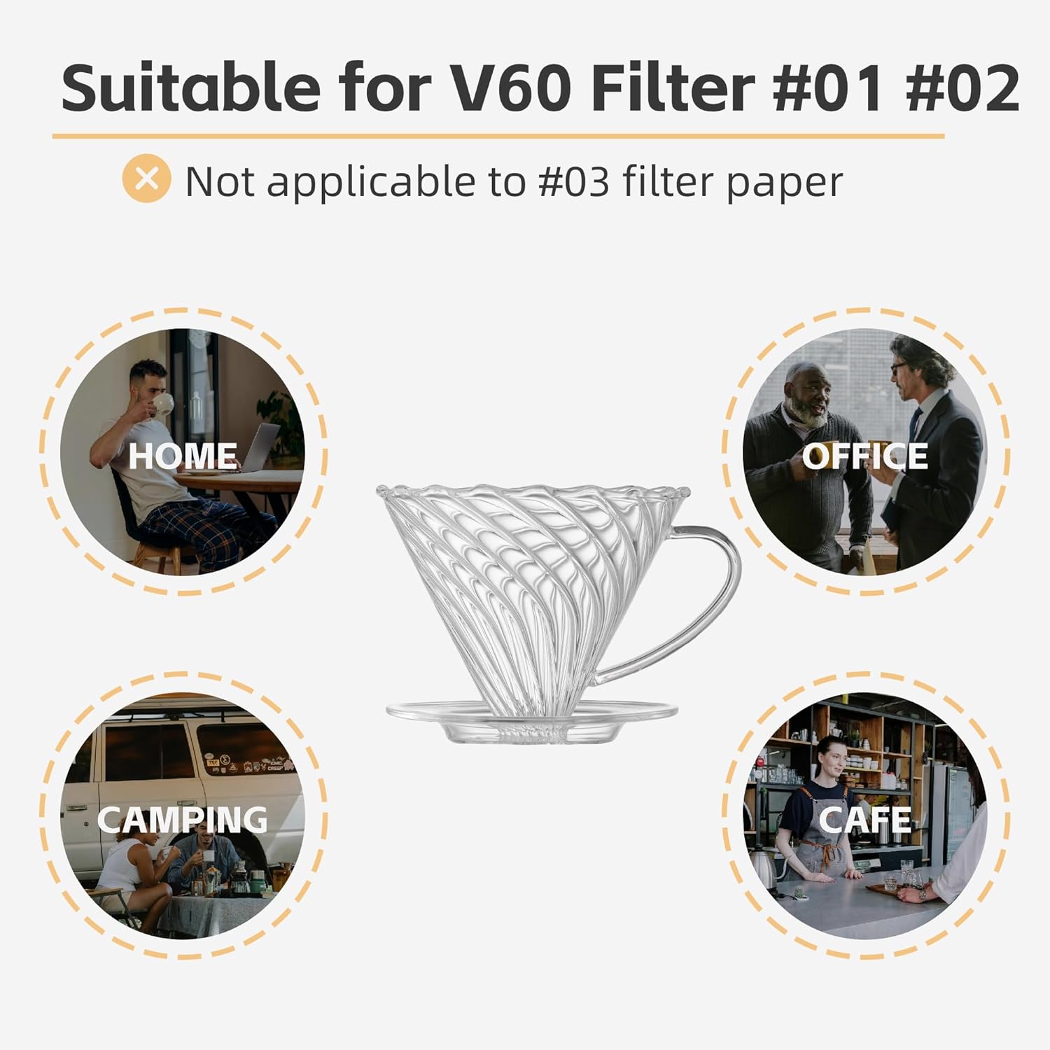 - High Quality Materials: The coffee dripper is made of borosilicate glass which is food-grade glass, premium clear, durable and reliable. High tempture and cold resistance.