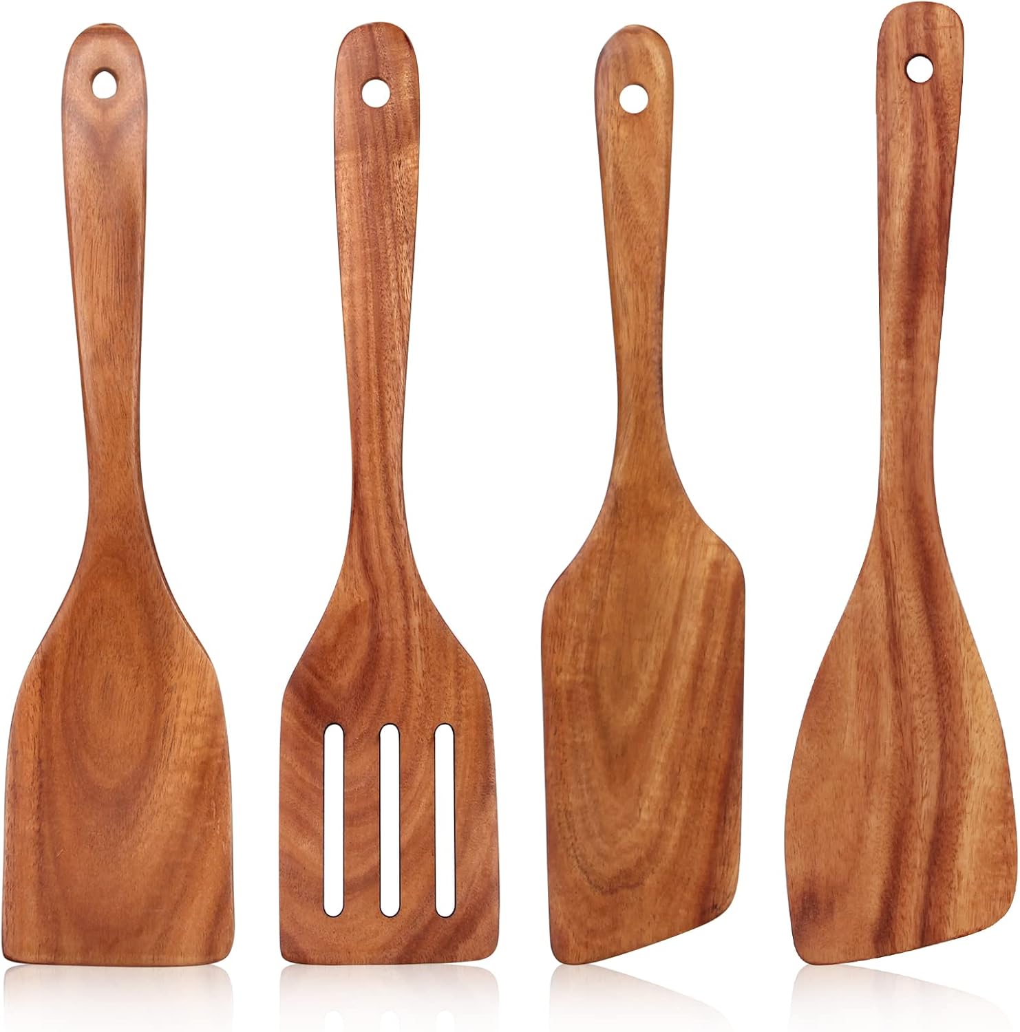 Best Non Toxic Wooden Spatula for Cooking Utensils Set Wood Spurtle Flat Spatulas for Kitchen Use Tools Teak Utensils Slotted Turner Bamboo Cooking Spoons Egg Utensil Cast Iron Scraper Thin Spatula