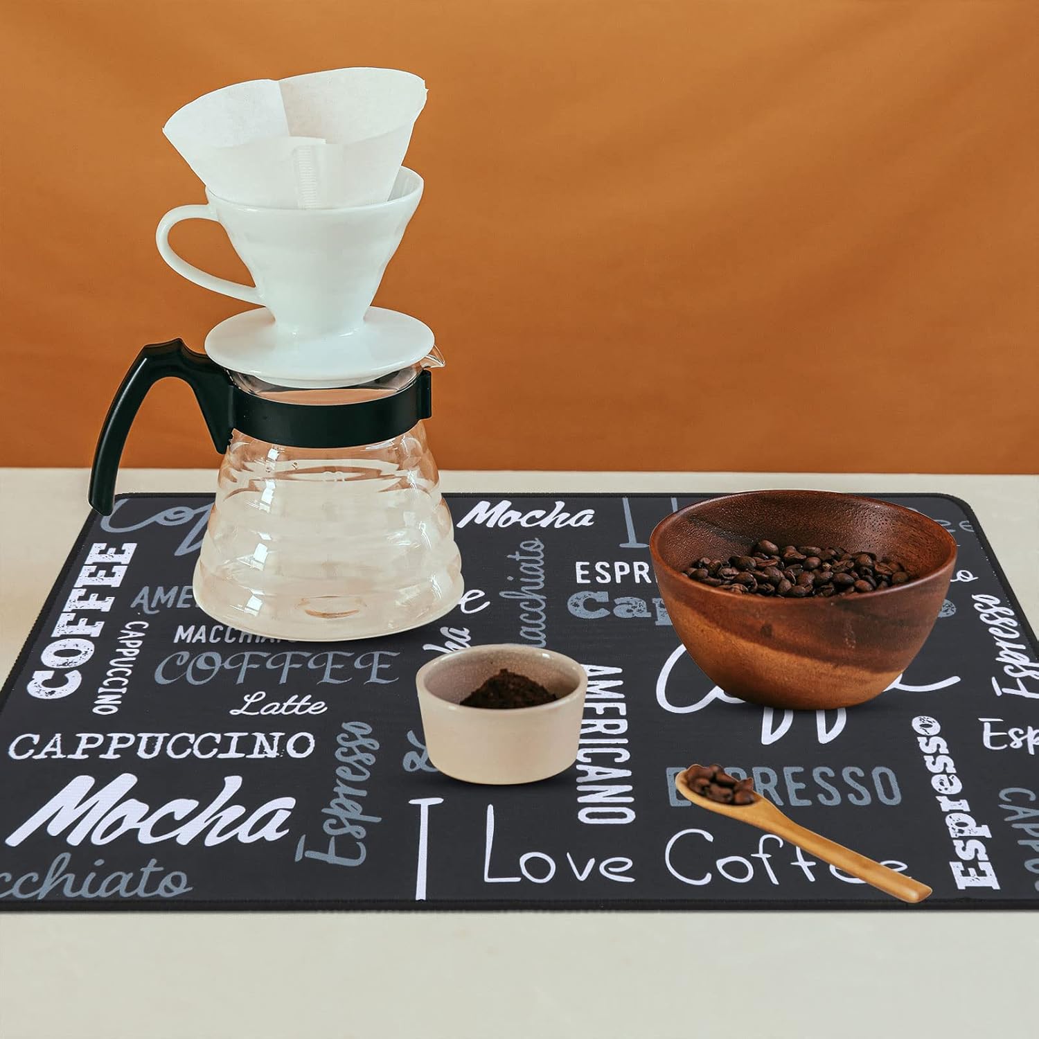 SHACOS Coffee Mat 2-Pack 12x19 Inch Absorbent Non Slip Coffee Maker Mats for Countertop Coffee Bar Accessories Dish Drying Mat Waterproof Heat Resistant, Chalkboard Black