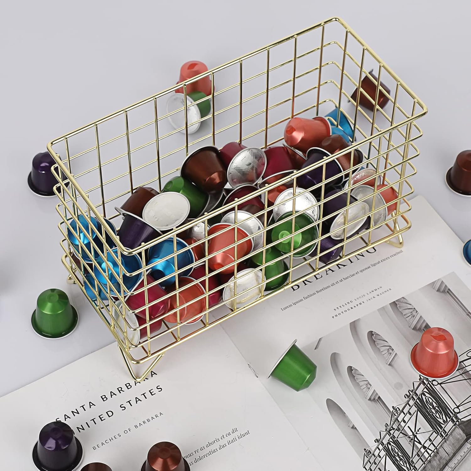 - MULTI PURPOSE - This metal storage basket is not just designed for coffee pods, it is also great for sweeteners, milk balls, snacks and even be a table organizer.Also can be a berry basket, such as storaging strawberries, cherries, cherry tomatoes.