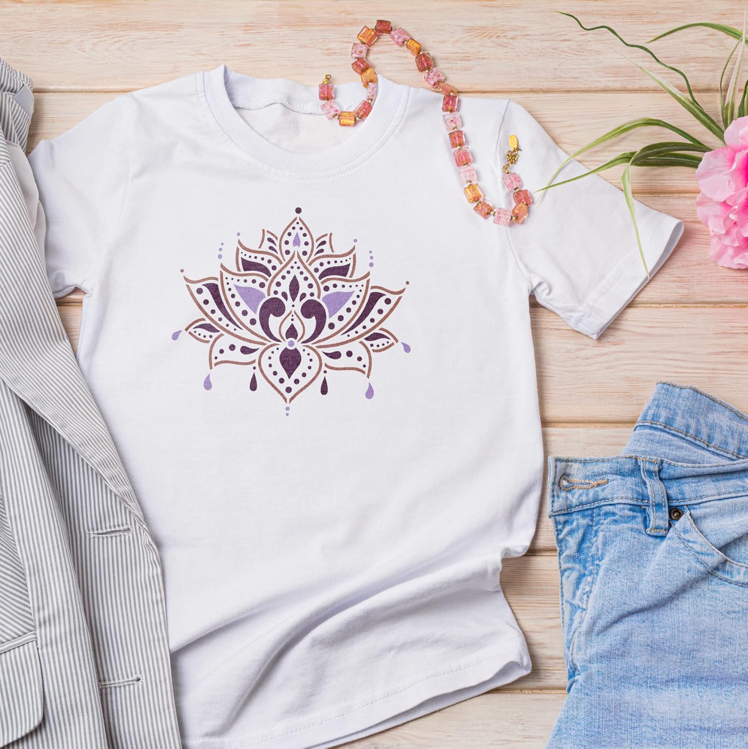 NAKLEO Painting Stencil for Crafts A4 8.3” x 11.8”, Indian Lotus Flower Pattern, Reusable Plastic DIY & Scrapbooking Drawing Template, Decoupage Art Home Decor, Wall Wood Fabric Furniture
