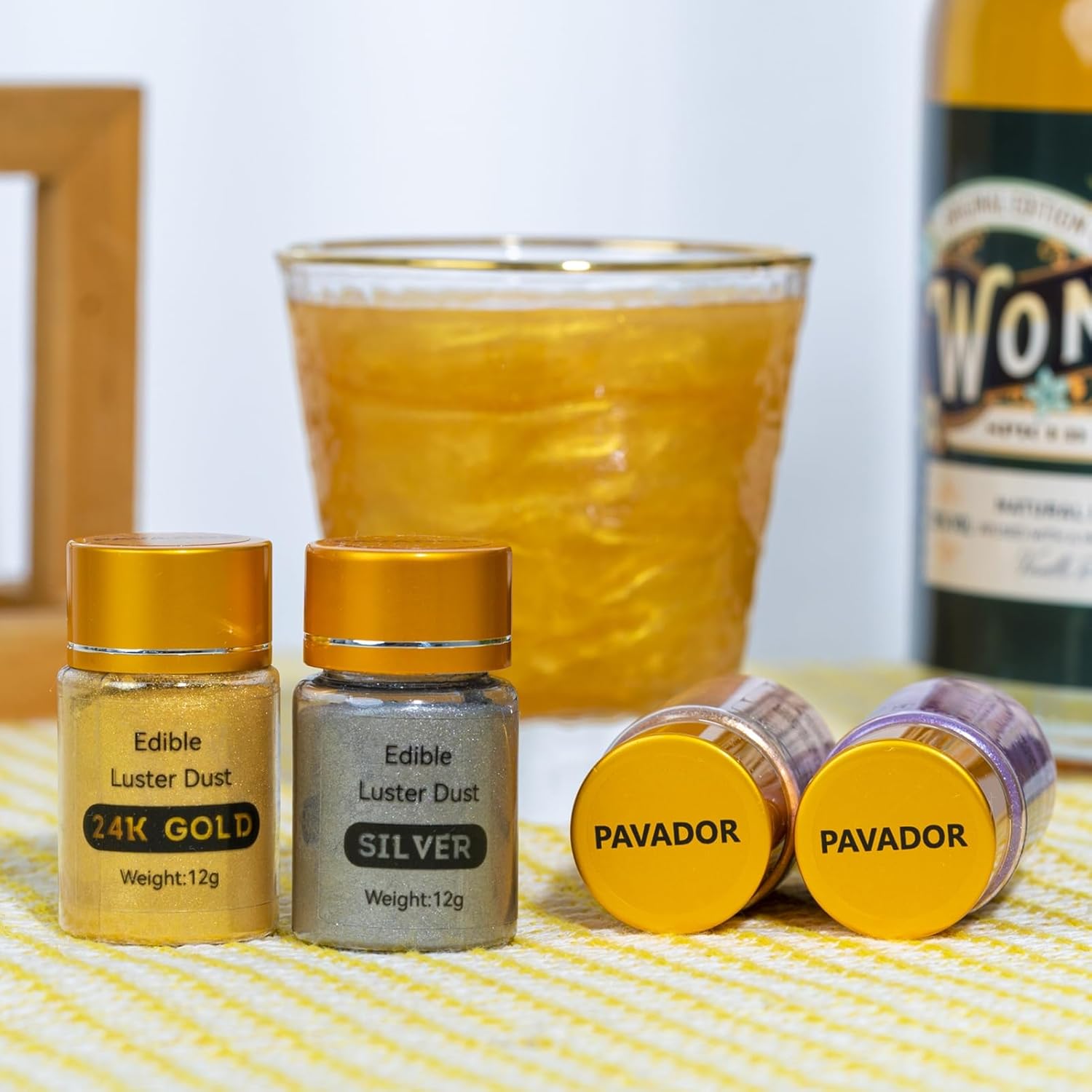 PAVADOR Edible Luster Dust,Silver Luster Dust 12g Food Grade Metallic Shimmer,Edible Glitter for Desserts Cake Decorating, Baking, Fondant, Chocolate, Candy, Drinks, Cookies, Vegan