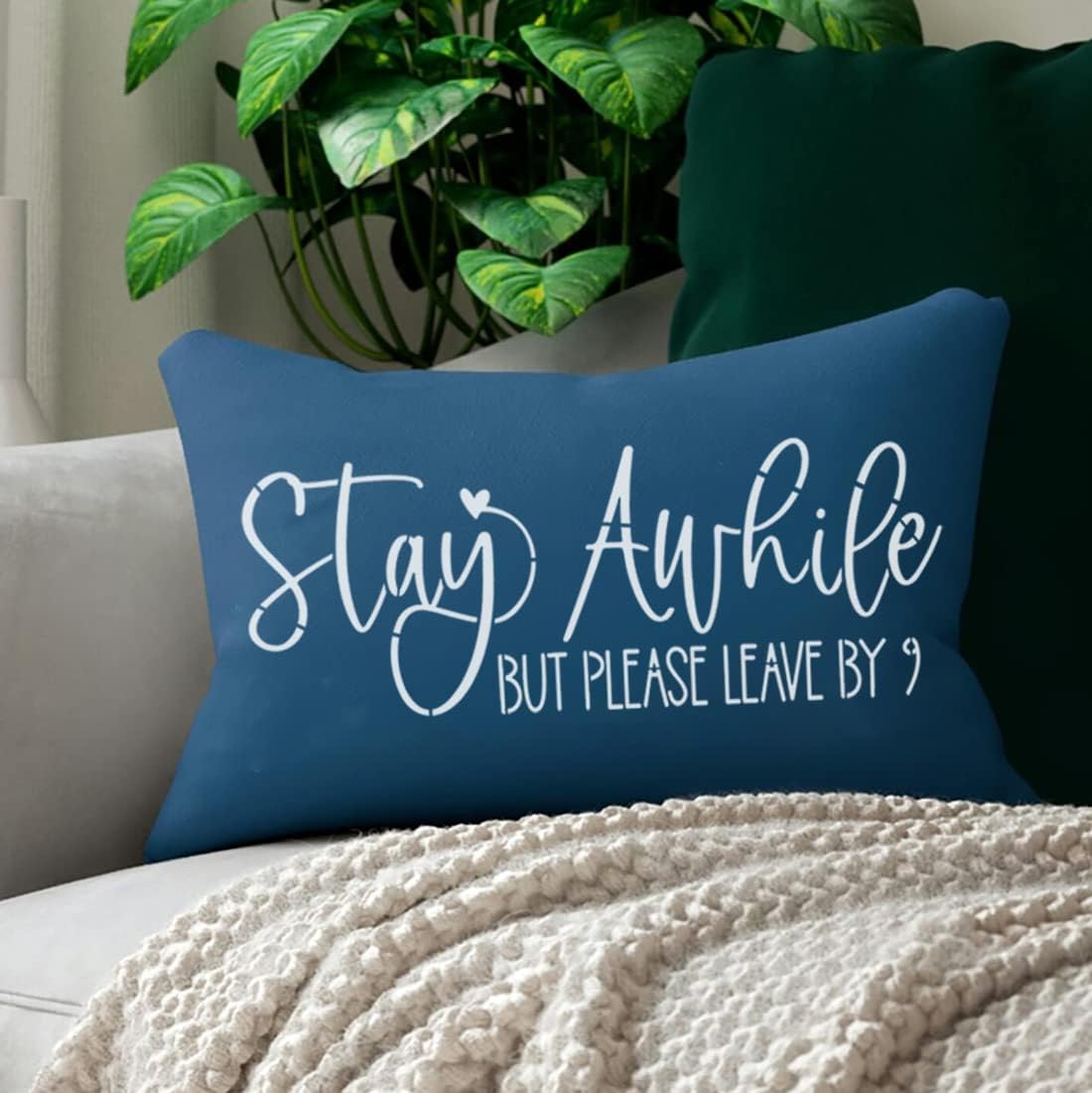 Funny Welcome Stencils for Painting Sarcastic Round Stencil Large Gather Stay Awhile Templates for Door Hanger,Doormat, Porch Sign, Wreath