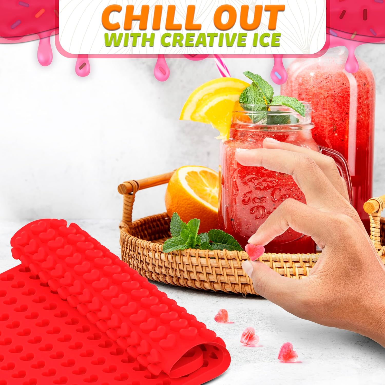 255 Cavities Mini Hearts Mold - 15.4" x 10.9" Mini Heart Silicone Mold for Making Candies, Chocolates and Gummies - Red Heart Ice Cube Tray with Easy Demolding, Flexible & Durable Heart Molds Silicone