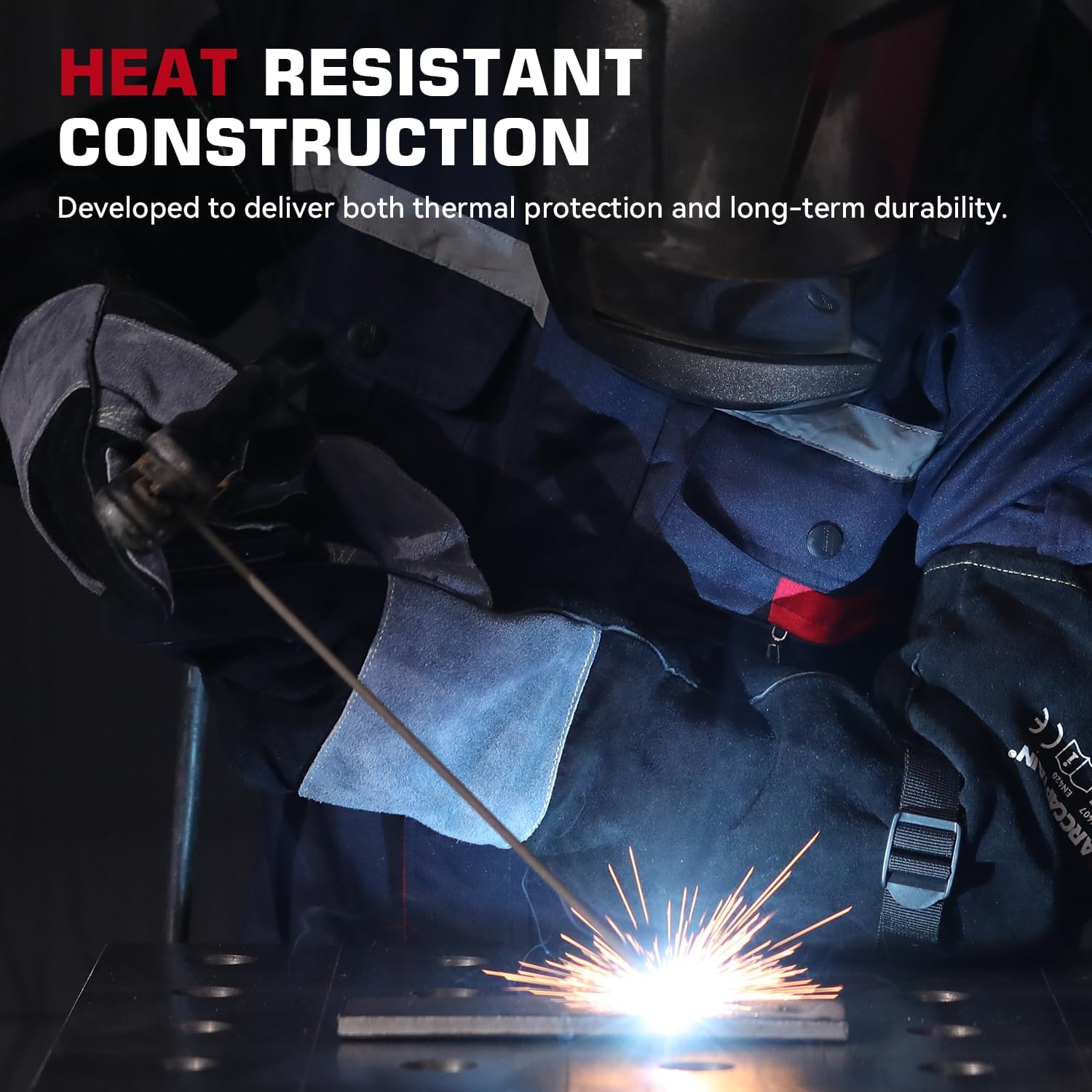 - Excellent Heat Resistant: The welding gloves are made of 100% heavy duty flame resistant split cowhide, which offers the strong protection with double reinforced layer padding on palms to withstand temperatures up to 662℉. The design against extreme heat, and ultraviolet and infrared radiation while welding.