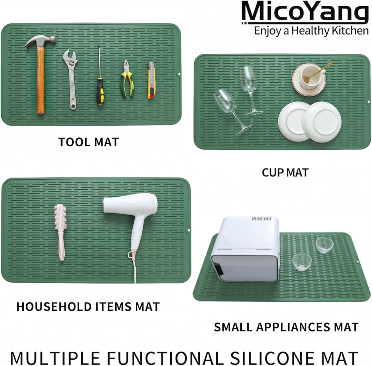 Silicone Dish Drying Mat for Multiple Usage,Easy clean,Eco-friendly,Heat-resistant Silicone Mat for Kitchen Counter or Sink,Refrigerator or Drawer Liner Green 4XL 32 inches x 18 inches