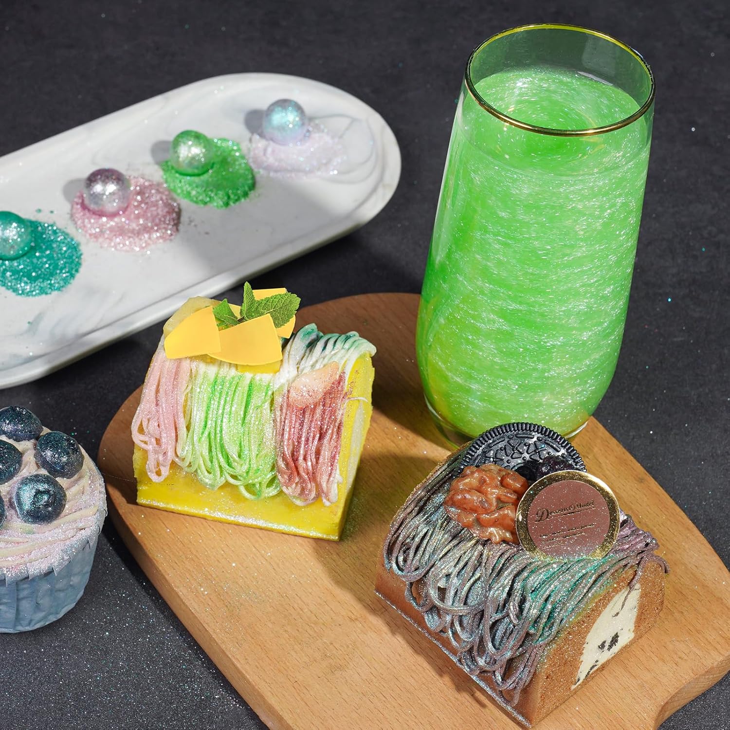 - ✔️【Easy to Use】Specially developed for food decoration and craft industries, this luster dust produces realistic looks by highly pigmented colors with a metallic finish. The pretty fine grain is more convenient for painting. To add glimmer and sparkle to your creations, simply sprinkle or dry brush the luster glitters on them. This product adheres very well to both wet and dry mediums. Attention: Seal and store glitter powder in a cool and dry place after use. Do not expose to excessive heat.