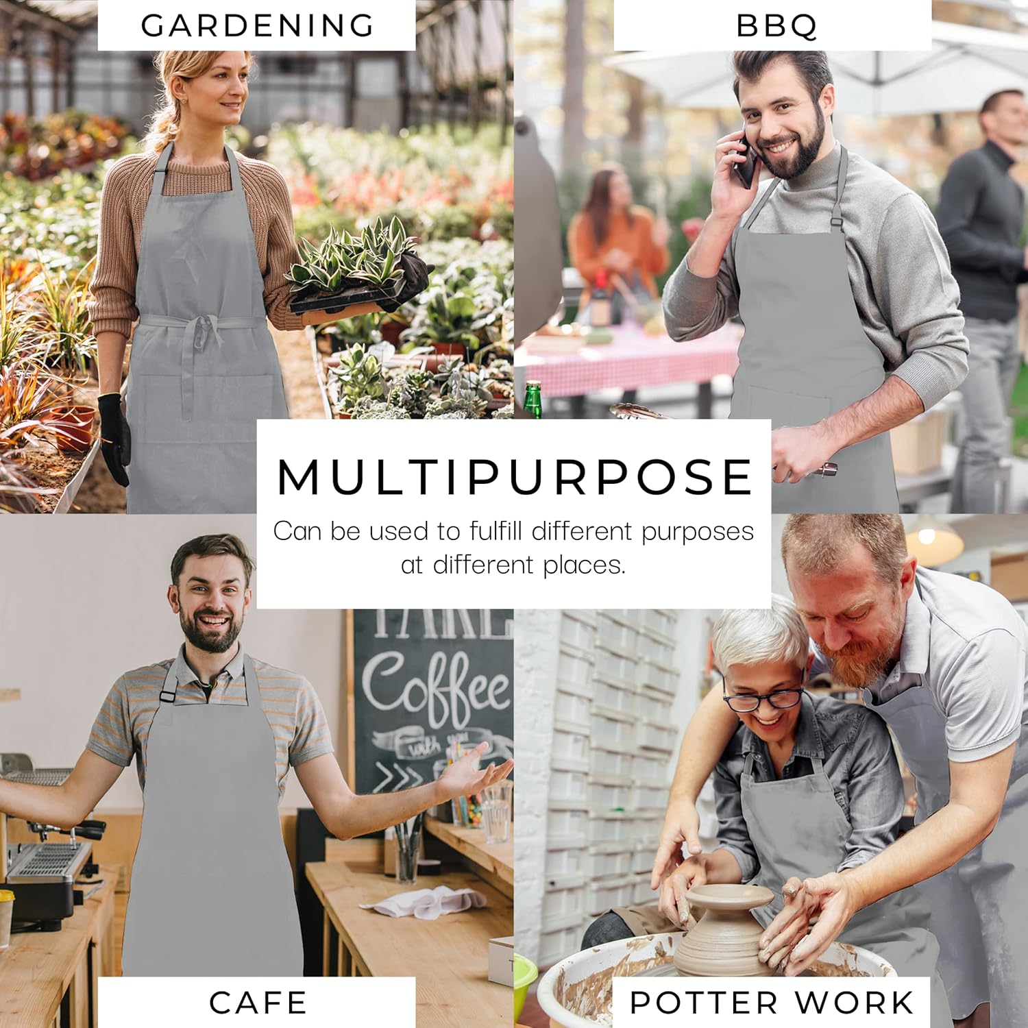 - WIDE COVERAGE : These versatile aprons are suitable for kitchen cooking, backyard BBQs, and artistic pursuits like painting. Offering protection against hot oil, water droplets, and various stains, they ensure a reliable shield for diverse activities.